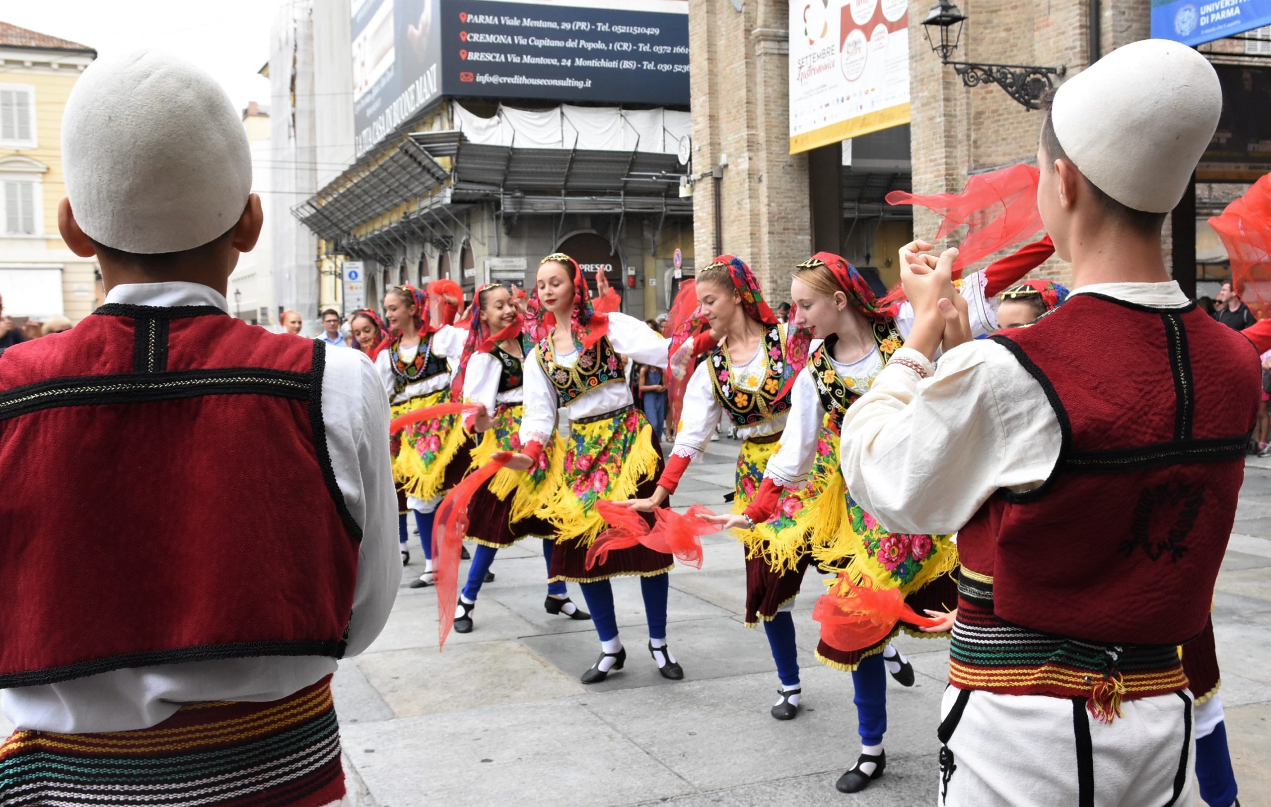 Questa mattinata solo un po’ piovosa ha visto le danze dell’Accademia di Danze di Tirana proposte da ragazzi dai 12 ai 13 anni. L’Albania, visti gli stretti legami con l’Italia e con l’ampia comunità albanese parmense, è uno dei principali paesi partner del Festival. “L’Albania è una nazione ricca di cultura e folclore ancora troppo poco conosciuti. Occasioni come questa presentano la ricchezza che questo popolo. L’Accademia di danze, per esempio è stata fondata nel ’57 dopo che dai primi anni 50 i maestri si sono formati l’Accademia statale di Balletto Bol’šoj di Mosca” ha raccontato Carlo Devoti.