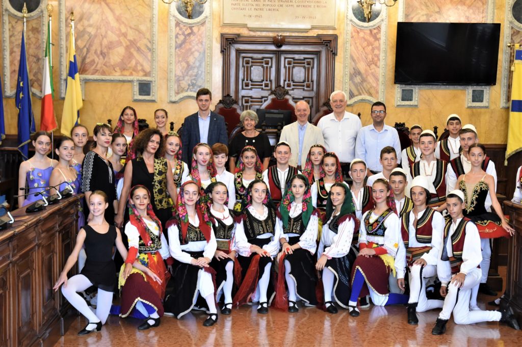 La delegazione albanese è stata ricevuta nella Sala del Consiglio Comunale dall’Assessora Nicoletta Paci, dai Consiglieri Aggiunti Marion Gajda e Leonardo Spadi, e dal Consigliere Sandro Campanini per un saluto istituzionale e la consegna del gagliardetto della città di Parma.