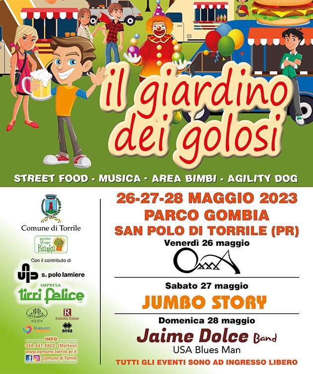 Musica, street food, giochi ed artisti di strada. C’è tutto questo nel programma de “Il giardino dei golosi”, il format che caratterizza la fiera di San Polo di Torrile in programma da venerdì 26 a domenica 28 maggio.