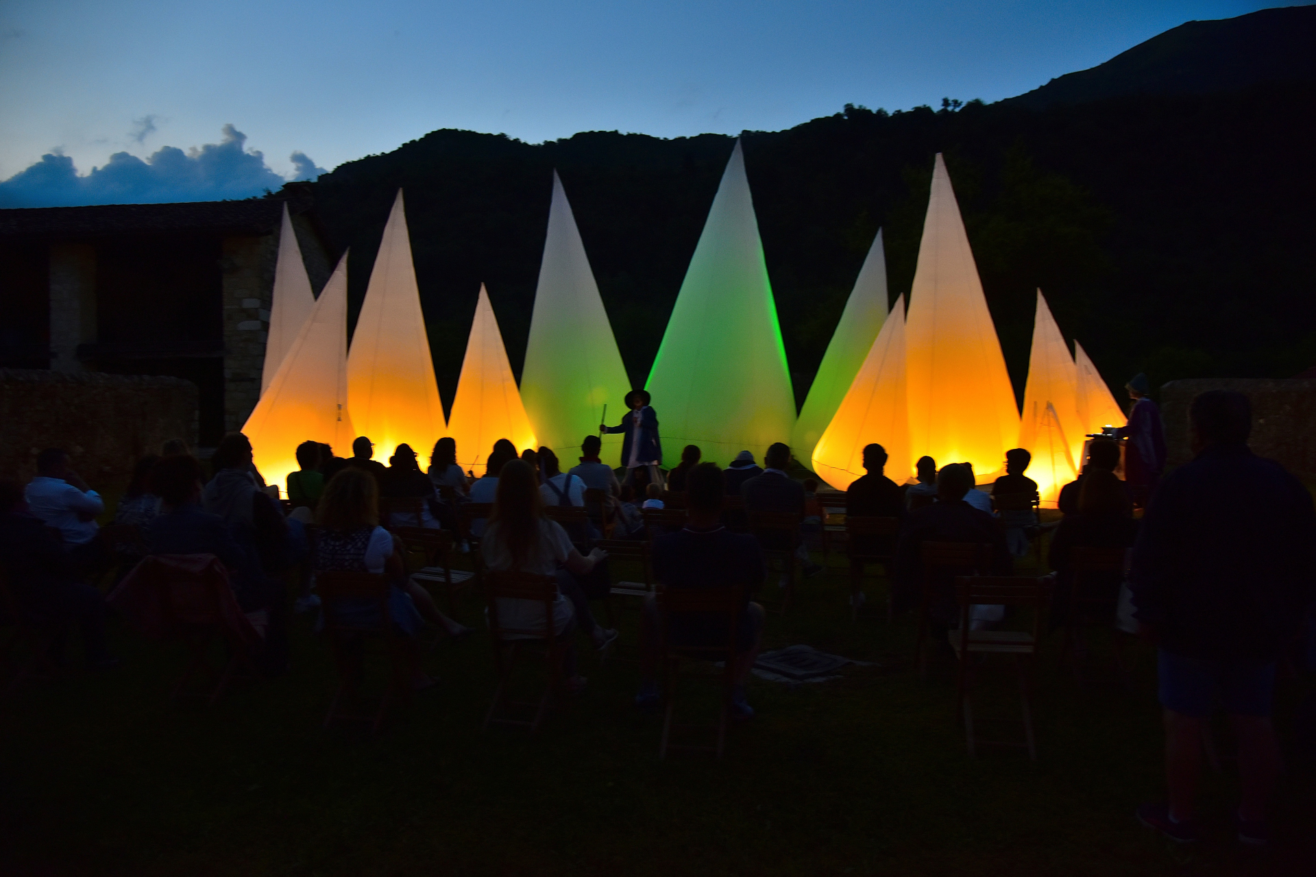 In questa favola che intreccia narrazione, ombre proiettate sugli alberi e giochi di luce, il pubblico viene accompagnato in un mondo di figure magiche e animali fantastici. L’accoglienza è affidata ai folletti, gli Sbilfs, che interagiscono con i presenti, narrano storie, tradizioni, leggende e invitano al rispetto della natura.