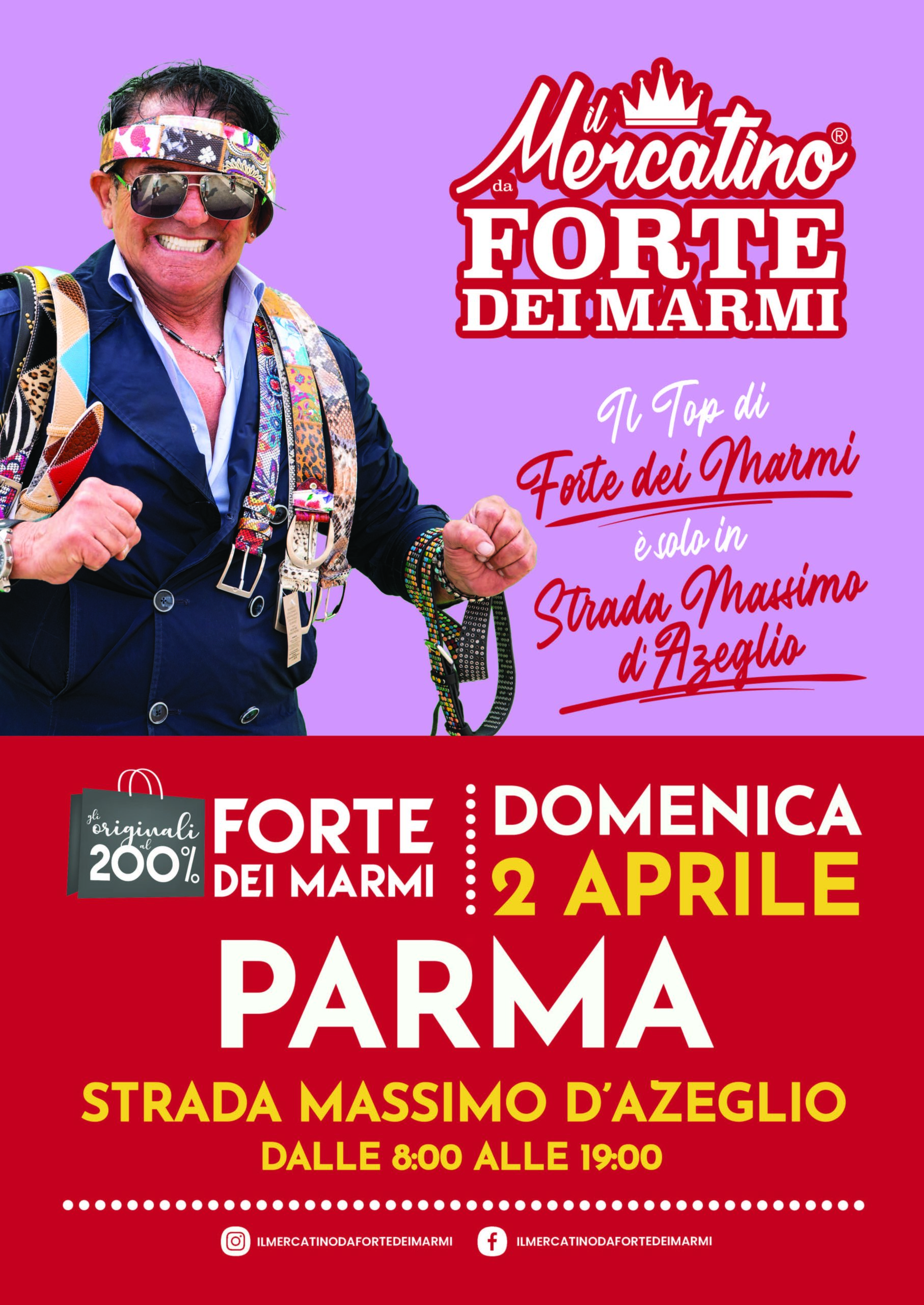 Domenica 2 aprile, a Parma, il top di Forte dei Marmi è solo in Strada Massimo D’Azeglio, con IL MERCATINO DA FORTE DEI MARMI!