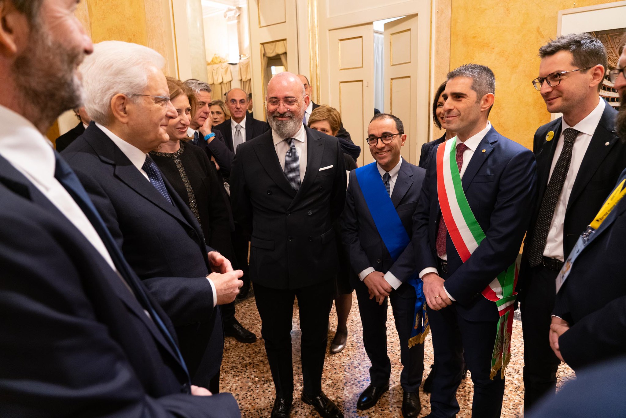 Il Presidente è stato accolto, in un Teatro Regio gremito, dal Sindaco, Federico Pizzarotti; dall’Assessore alla Cultura Michele Guerra; dal Presidente della Provincia, Diego Rossi; dal Presidente della Regione, Stefano Bonaccini e dal Ministro per i Beni e le Attività Culturali e per il Turismo, Dario Franceschini.