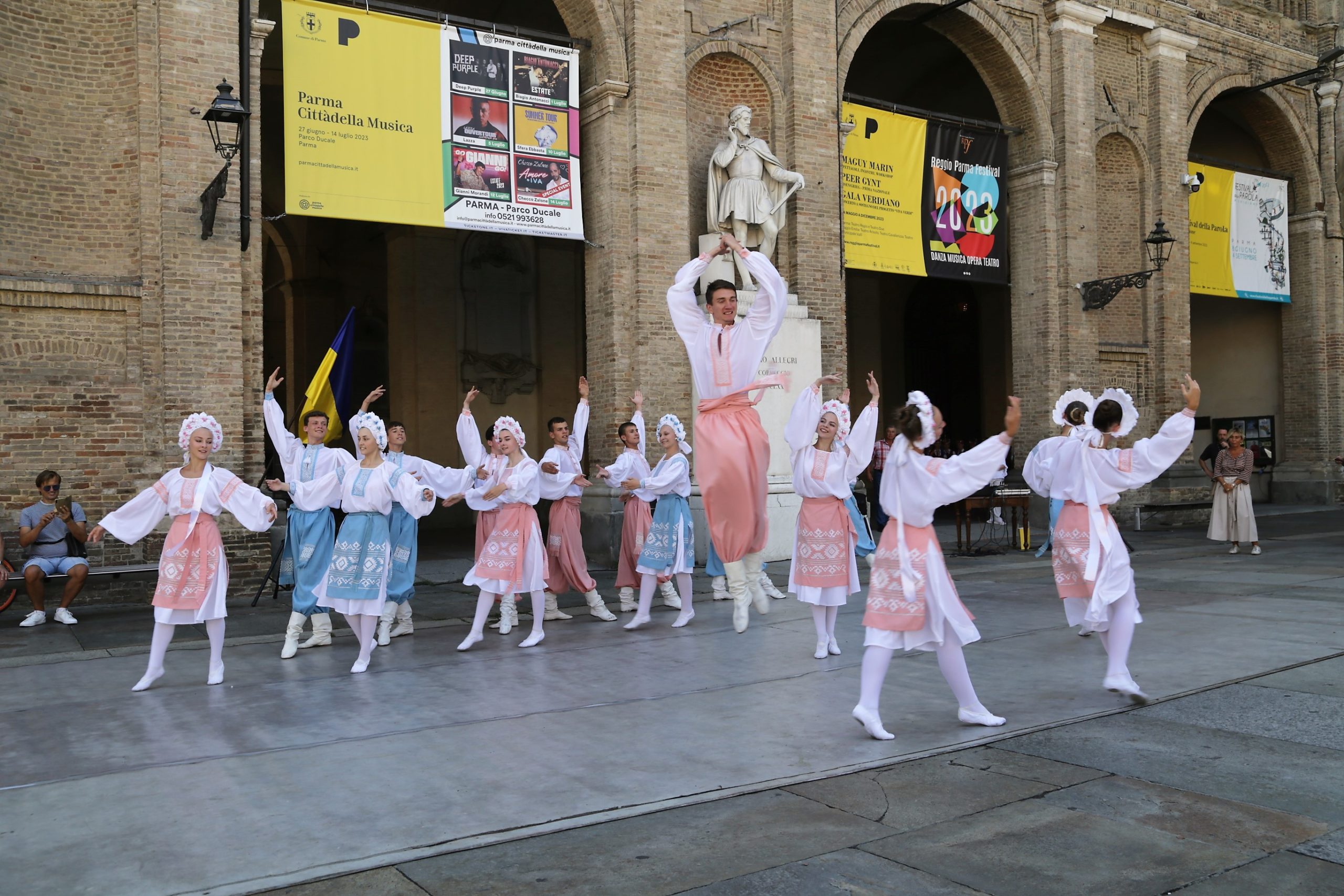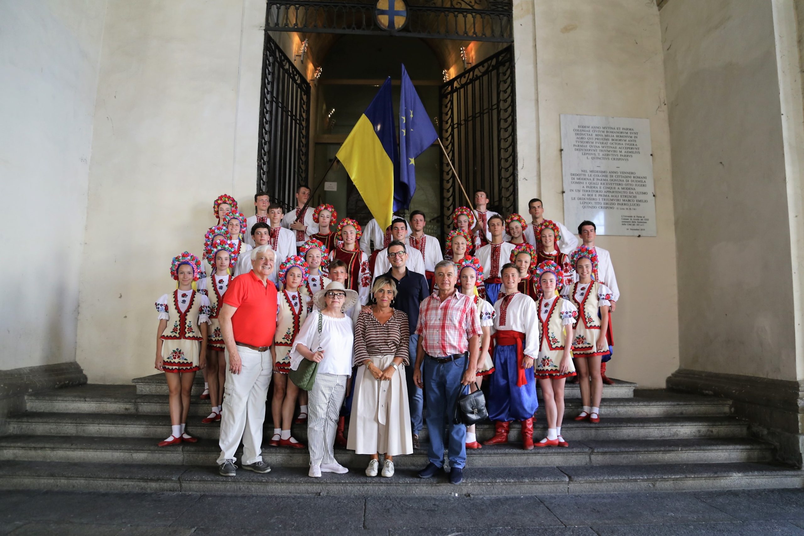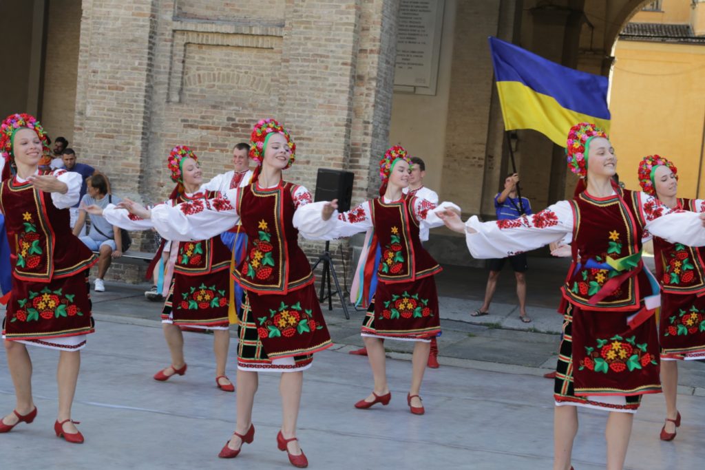 Dopo il momento istituzionale, i ragazzi e le ragazze ucraini si sono esibiti in danze tipiche del loro Paese in piazza Garibaldi.