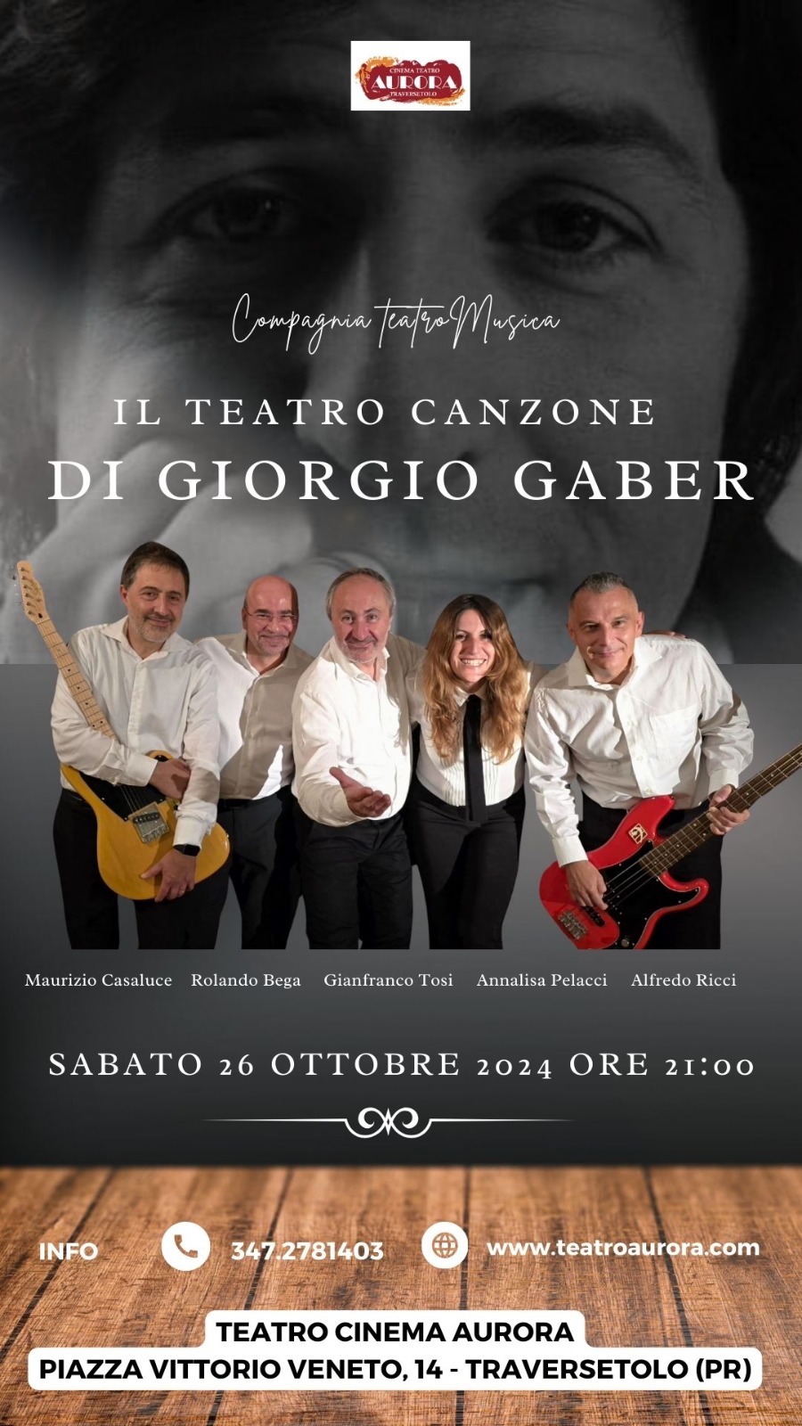 Il Teatro-Canzone di Giorgio Gaber in scena sabato 26 ottobre, ore 21:00 al Teatro Aurora di Traversetolo.