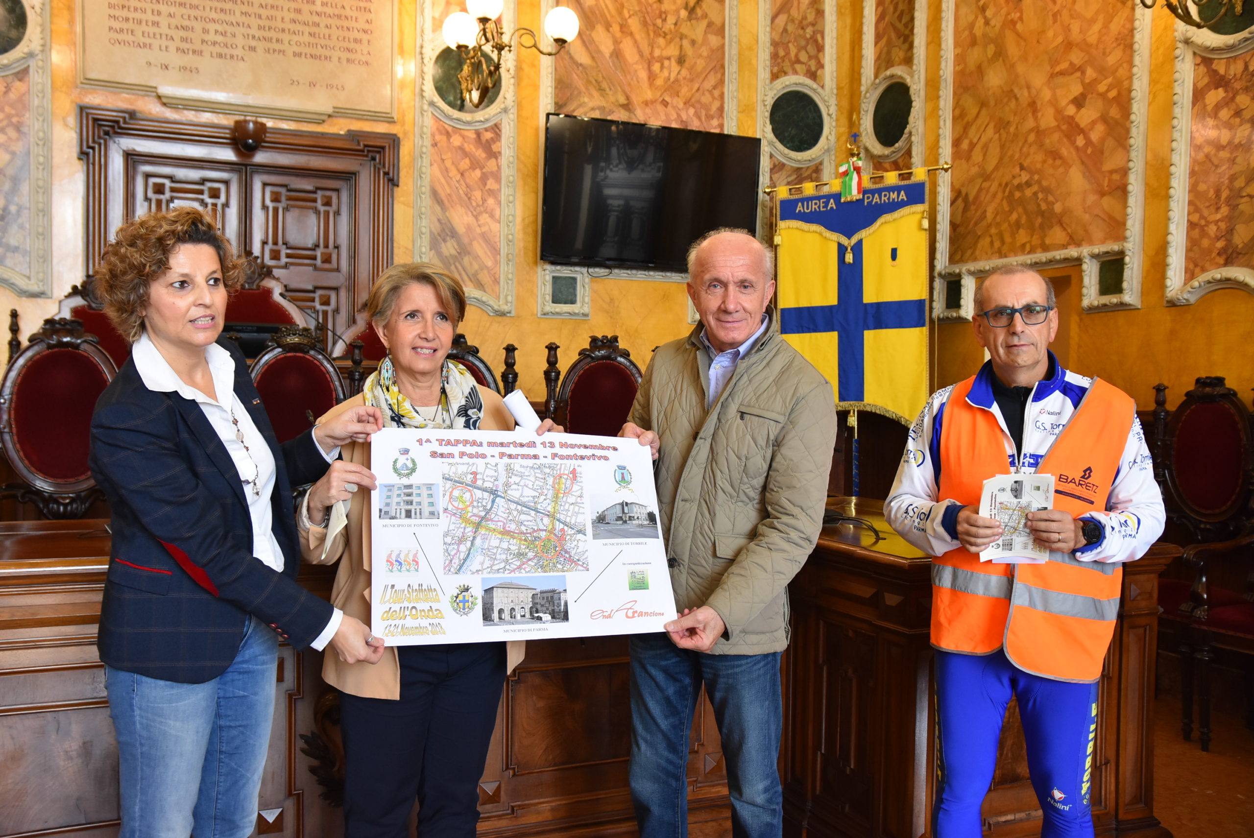 Nella sala del Consiglio Comunale c’è stato il passaggio di consegne tra i rappresentanti del Comune di di Torrile e quello di Parma. L’Assessora alla Pubblica Istruzione del Comune di Torrile, Lucia Frasanni, accompagnata dall’Assessore allo sport Giorgio Faelli, ha fatto il passaggio del testimone con Parma, consegnando la lettera del sindaco Alessandro Fadda all’Assessora alle Partecipazione e Diritti dei Cittadini del Comune di Parma, Nicoletta Paci, alla presenza dei ciclisti che da San Polo hanno raggiunto la città ducale e dei bambini e delle bambine della classe 2^ A della scuola Ulisse Adorni che fa parte dell’Istituto comprensivo Micheli, accompagnati dalla insegnanti. La prossima tappa dell’OndaArancione sarà il Comune di Fontevivo.