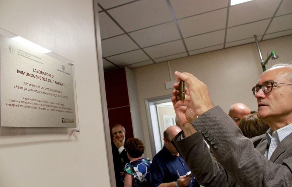 La targa è stata scoperta questa mattina da Paola Zanelli, responsabile Immunogenetica dei trapianti, Pier Paolo Dall’Aglio, presidente Centro di bioetica Luigi Migone, insieme ai familiari, i figli Elisa e Paolo, il nipote Giovanni Campari, agli allievi del Prof. Migone, a Gabriela Sangiorgi direttore del Centro di riferimento trapianti Emilia-Romagna, Pierantonio Muzzetto, presidente Ordine dei Medici di Parma, Elena Saccenti, direttore generale dell’Azienda Usl di Parma, Paolo Andrei, rettore dell’Università degli Studi di Parma e Massimo Fabi, direttore generale Azienda Ospedaliero-Universitaria di Parma.