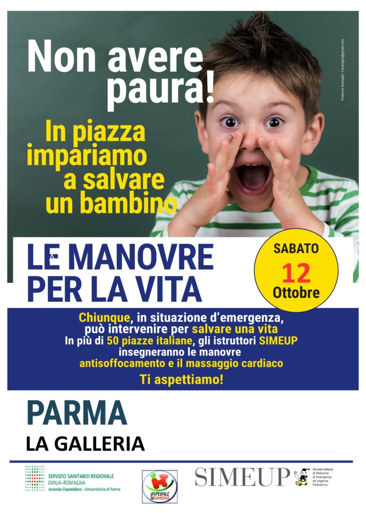 I professionisti della Pediatria generale e d’urgenza dell’Ospedale Maggiore, diretta da Icilio Dodi, saranno in Galleria a Parma sabato 12 ottobre (dalle ore 9 alle 13) a disposizione dei cittadini che vorranno avere maggiori informazioni e apprendere le modalità di intervento.