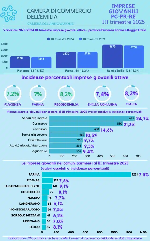 Dopo la stabilità rilevata a giugno, per le imprese giovanili attive in provincia di Parma i dati del terzo trimestre 2025 appaiono decisamente positivi e in netta controtendenza rispetto a quelli delle vicine province emiliane.