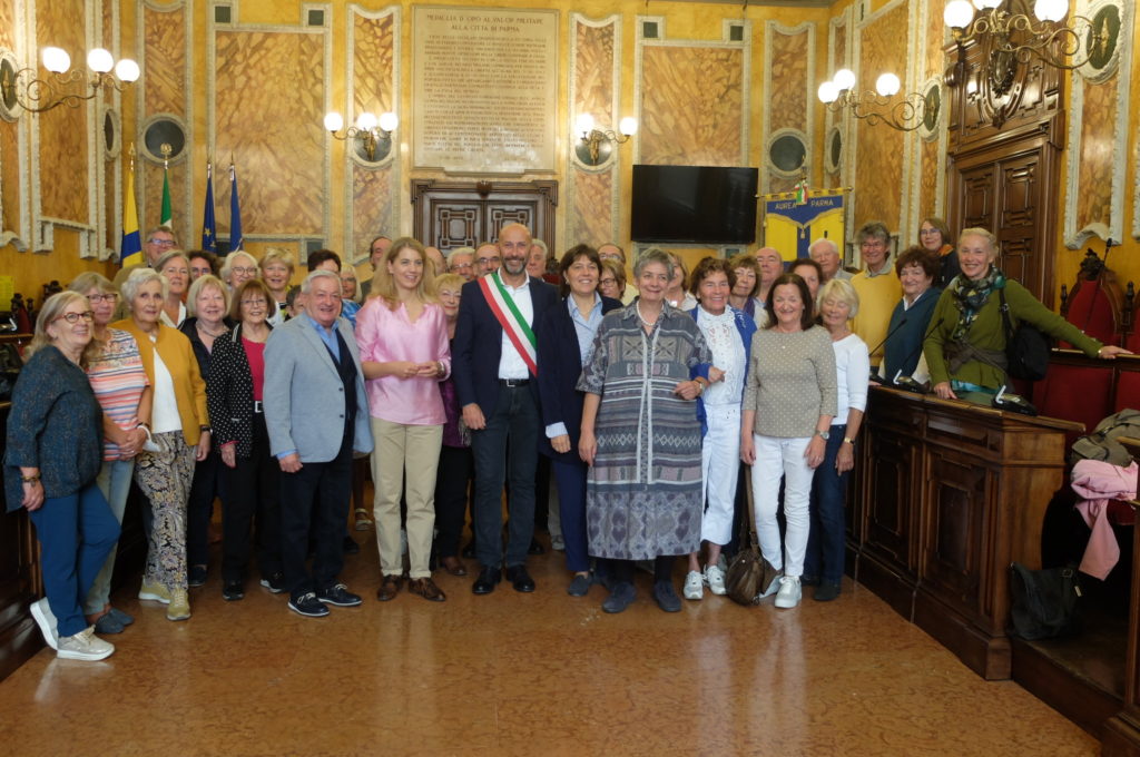 La delegazione di quest’anno, composta da 40 persone e accompagnata dalla Vice Sindaca di Worms Stephane Lohr, dalla Presidente e dal Vice Presidente dell’Associazione Parma-Worms Marita Tann e Sergio Cusinato, ha iniziato la sua visita a Parma proprio dal Municipio e nei prossimi giorni di soggiorno avrà modo di scoprire la città e il territorio, il Consorzio Produttori Latte per capire come viene prodotto il Parmigiano Reggiano, la Reggia di Colorno e il Museo del Culatello oltre alla Corale Verdi, realtà con la quale i cittadini di Worms hanno uno speciale rapporto di amicizia (molti ne sono soci).
