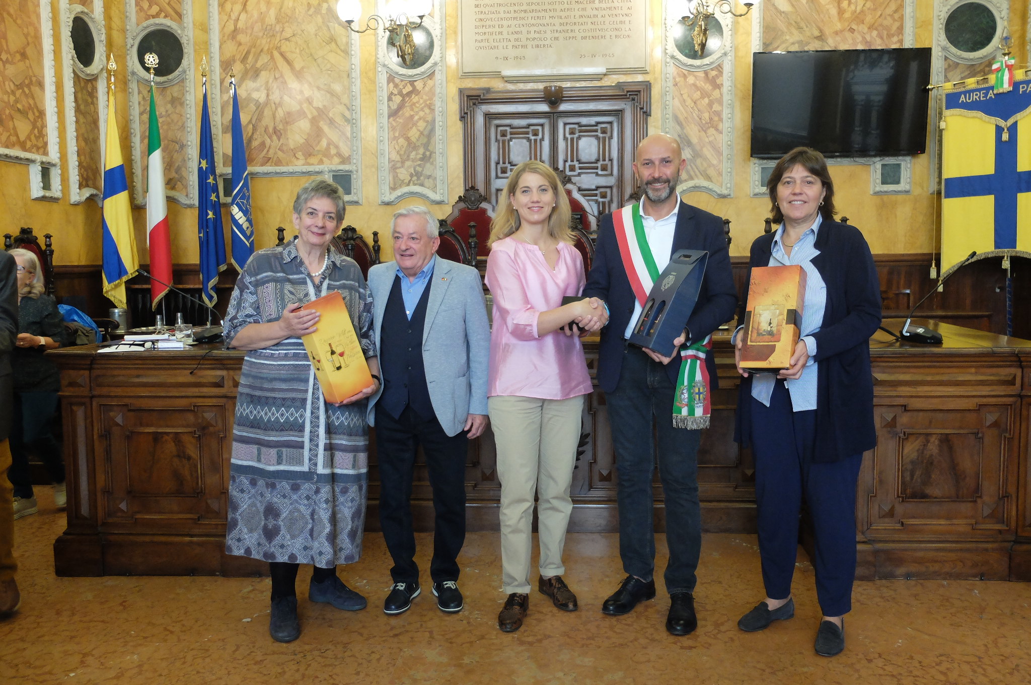 Nel fine settimana il presidente del Consiglio Comunale Michele Alinovi e l’assessora alla Cooperazione internazionale e alla Pace Daria Jacopozzi hanno ricevuto in Municipio la delegazione tedesca proveniente dalla città di Worms, in visita alla città di Parma fino al 26 settembre.