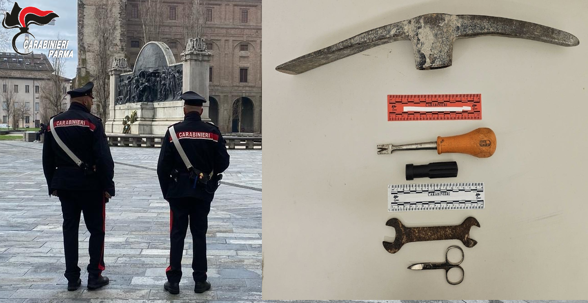 Nei giorni scorsi, i Carabinieri della Stazione di Parma Centro hanno denunciato alla Procura della Repubblica di Parma due 30enni di origini straniere, ritenuti presunti responsabili, in concorso tra loro, di due distinti furti aggravati, uno dei quali tentato, ricettazione e porto di armi o oggetti atti ad offendere.