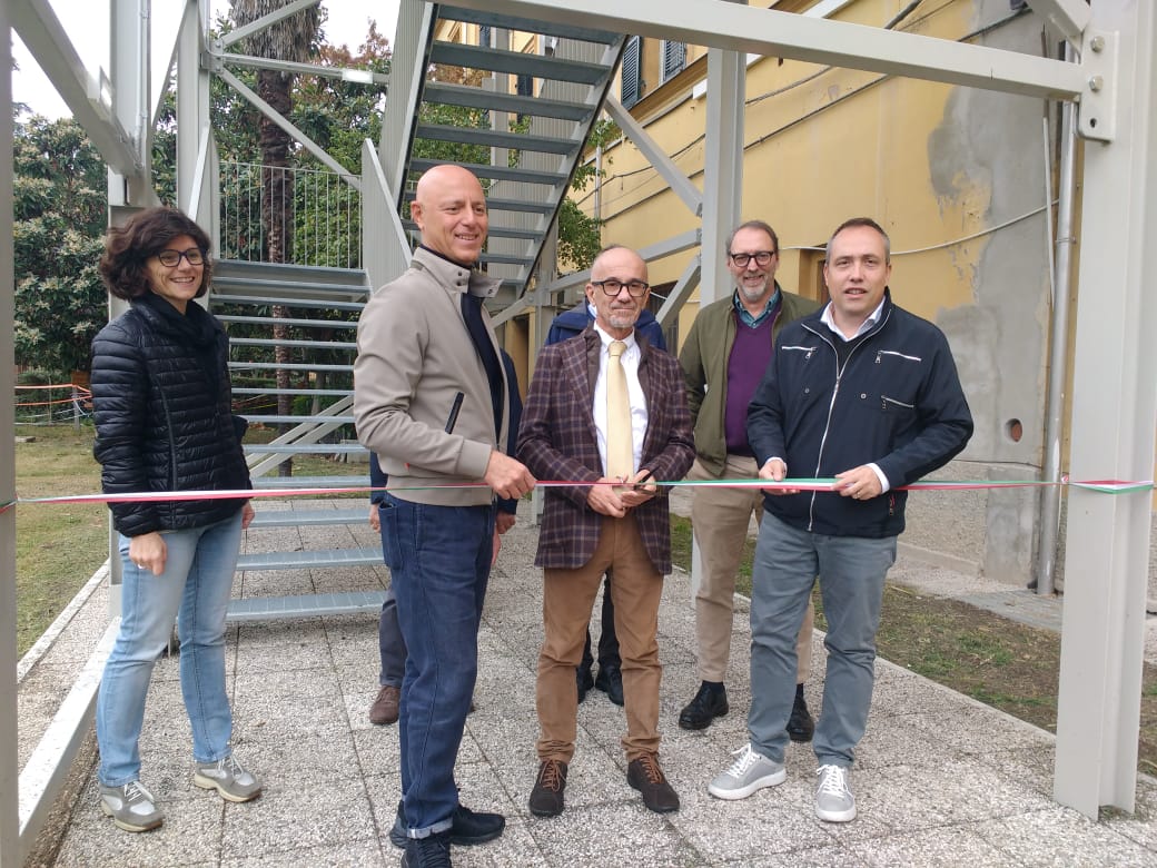 E’ stata realizzata anche una nuova uscita di sicurezza con relativa scala esterna, sempre a servizio dell’ala sud del Convitto, così da completare il quadro dei presidi di sicurezza dell’interno edificio, dopo che nel 2017 erano state realizzate le 2 scale esterne a servizio del Teatro del Convitto.