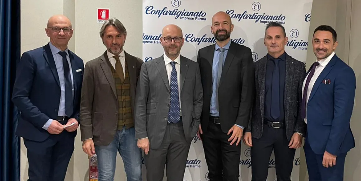 Moderati dal giornalista Andrea Gavazzoli hanno preso la parola il Segretario Generale di Confartigianato Parma Massimiliano Crapa , Carlo Scaldarella di Nomesis e Claudio Migliorati responsabile ufficio sostenibilità di Cassa Padana.