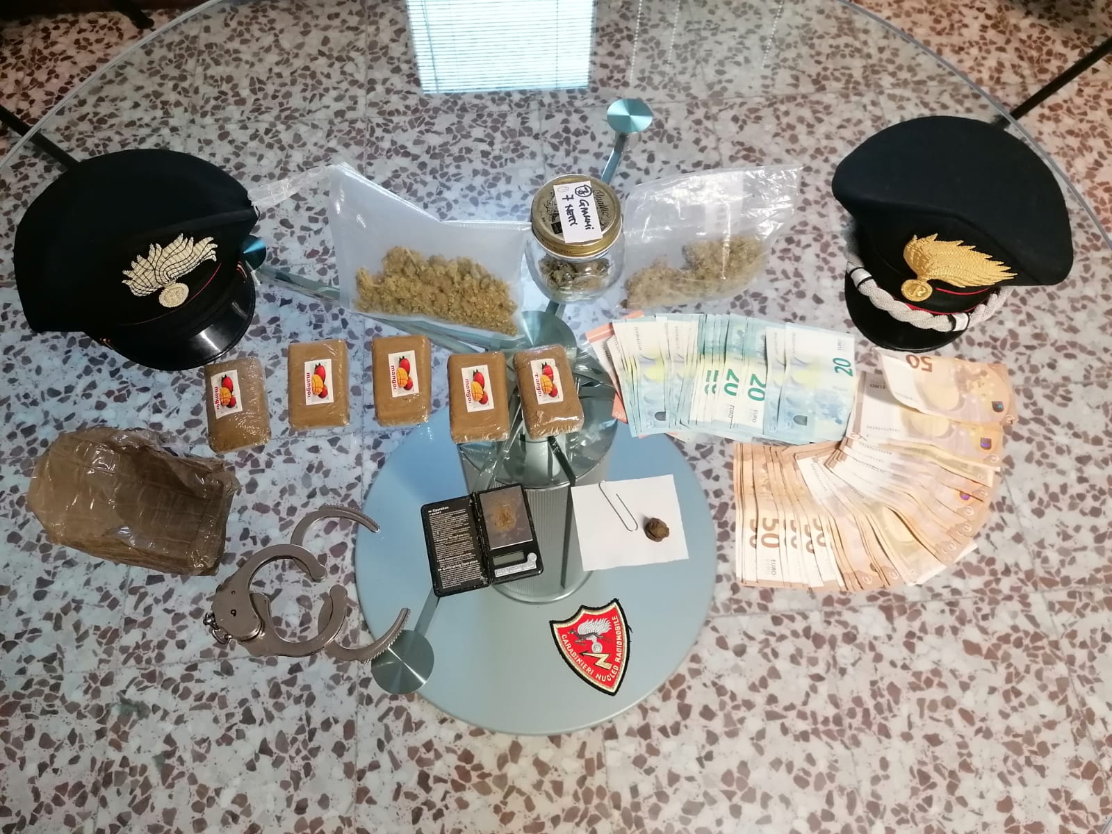 Ottenuti i rinforzi, mentre venivano effettuati tutti i controlli di rito, i militari sono tornati sul luogo dove avevano visto volare qualcosa dal finestrino. Non è stato facile, a causa del buio e della pendenza di quel terreno, in prossimità del cavalcavia autostradale, inoltre il “pacco” era stato gettato da una macchina lanciata a grandi velocità, rotolando lontano e disfacendosi in parte. A seguito di una minuziosa ricerca con le torce il vero motivo della fuga è stato palesato: mezzo chilo di hashish in 5 panetti, avvolti come di consueto in cellophane e nastro adesivo. La perquisizione domiciliare dei due ragazzi, entrambi fidentini e appena maggiorenni, con qualche precedente specifico di poco conto ha consentito il sequestro di un etto di marijuana già essiccata e la somma di oltre 2.000 euro.