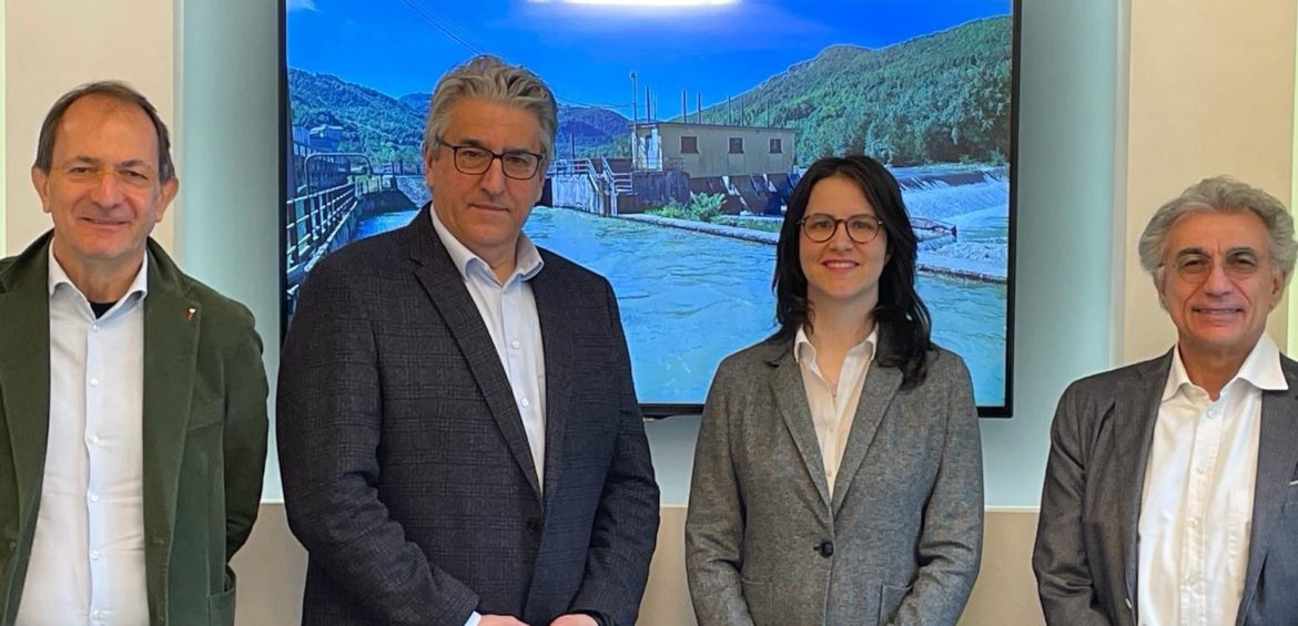 [Nella foto: un momento dell’incontro di questa mattina presso la Casa dell’Acqua con i rappresentanti dei due enti di bonifica, da sinistra: Domenico Turazza con Lorenzo Catellani (direttore generale e presidente dell’Emilia Centrale); Francesca Mantelli e Fabrizio Useri, presidente e direttore generale della Bonifica Parmense]