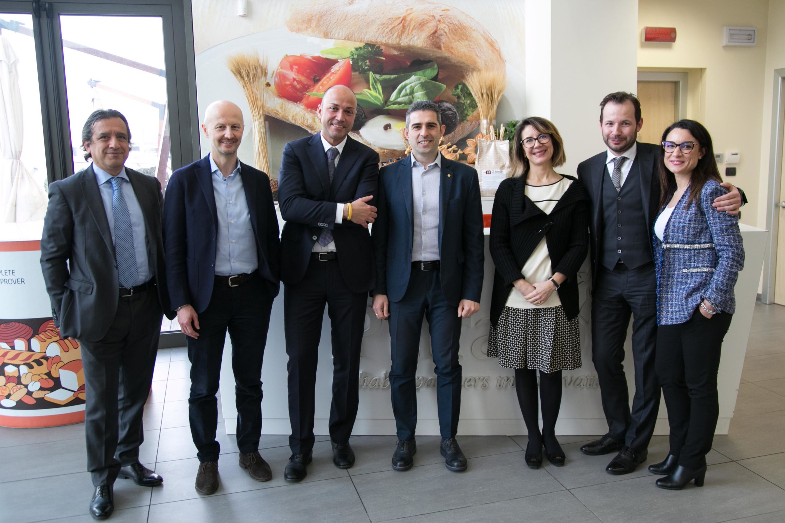 Alberto Molinari, General Manager Puratos Italia, Valentina Bianchi, Marketing Manager, Paolo Belloni Operation & Quality manager, Cristian Rizzotti National Sales Manager e Valentina Matrone HR Manager hanno illustrato al Sindaco e all’Assessore le potenzialità dell’azienda.