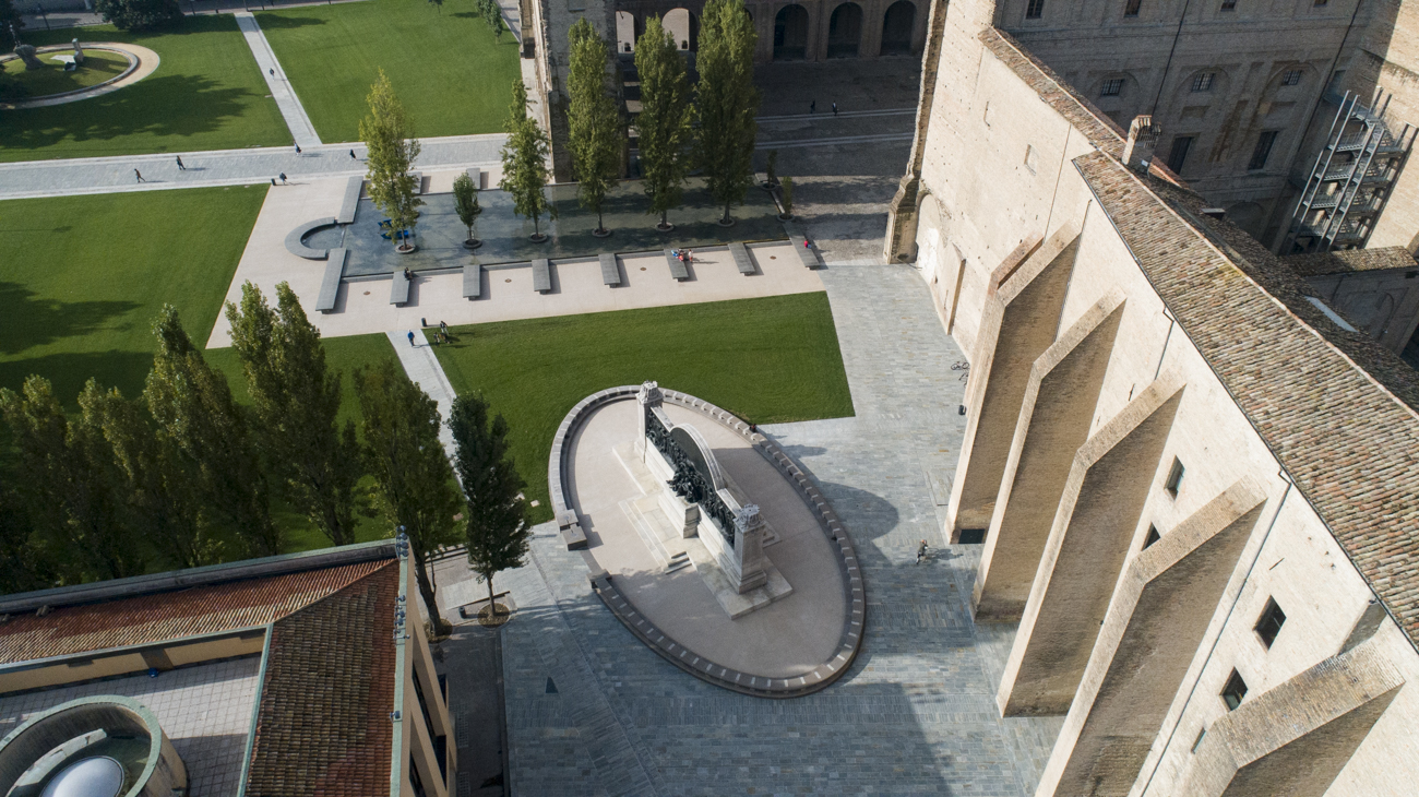 Il progetto di riqualificazione di piazza della Pace ha comportato investimenti pari a 2 milioni e 200 mila euro per rendere la piazza uno spazio più vivibile, maggiormente accessibile e funzionale anche alla rinascita del Polo Museale della Pilotta. Dopo due anni di lavori, la piazza è stata inaugurata il 21 settembre del 2019. E’ stato creato il nuovo “Sentiero delle Lettere” che taglia trasversalmente la piazza partendo dal lato verso via Verdi fino di fronte all’ex palazzo della Provincia. Sono state ampliate le trottatoie e lo spazio attorno al monumento a Giuseppe Verdi, creando una piazza teatro. Il prato è stato completamente sistemato e sono stati inseriti anche nuovi alberi, su lato di borgo della Cucine. Il progetto di riqualificazione è legato al significato culturale della piazza stessa dove sono collocati il Monumento al Partigiano e l’Ara Verdiana, descritti, nel “Sentiero delle Lettere”, da due poesie di Attilio Bertolucci: una in onore di Verdi che fa riferimento alla Giovanna D’Arco e l’altra in memoria di Giacomo Ulivi, un omaggio a Parma Città Medaglia d’Oro al Valor Militare. A queste due testimonianze si aggiungono altre due stele: una in corrispondenza di via Garibaldi all’inizio delle trottatoie che narra la storia di piazza della Pace, l’altra si attesta verso via Verdi, con un riferimenti al Cigno di Busseto.