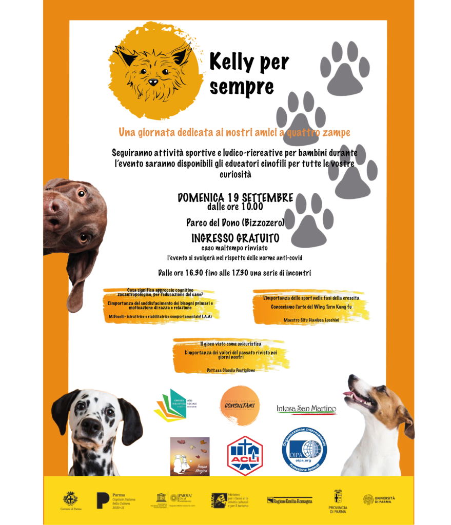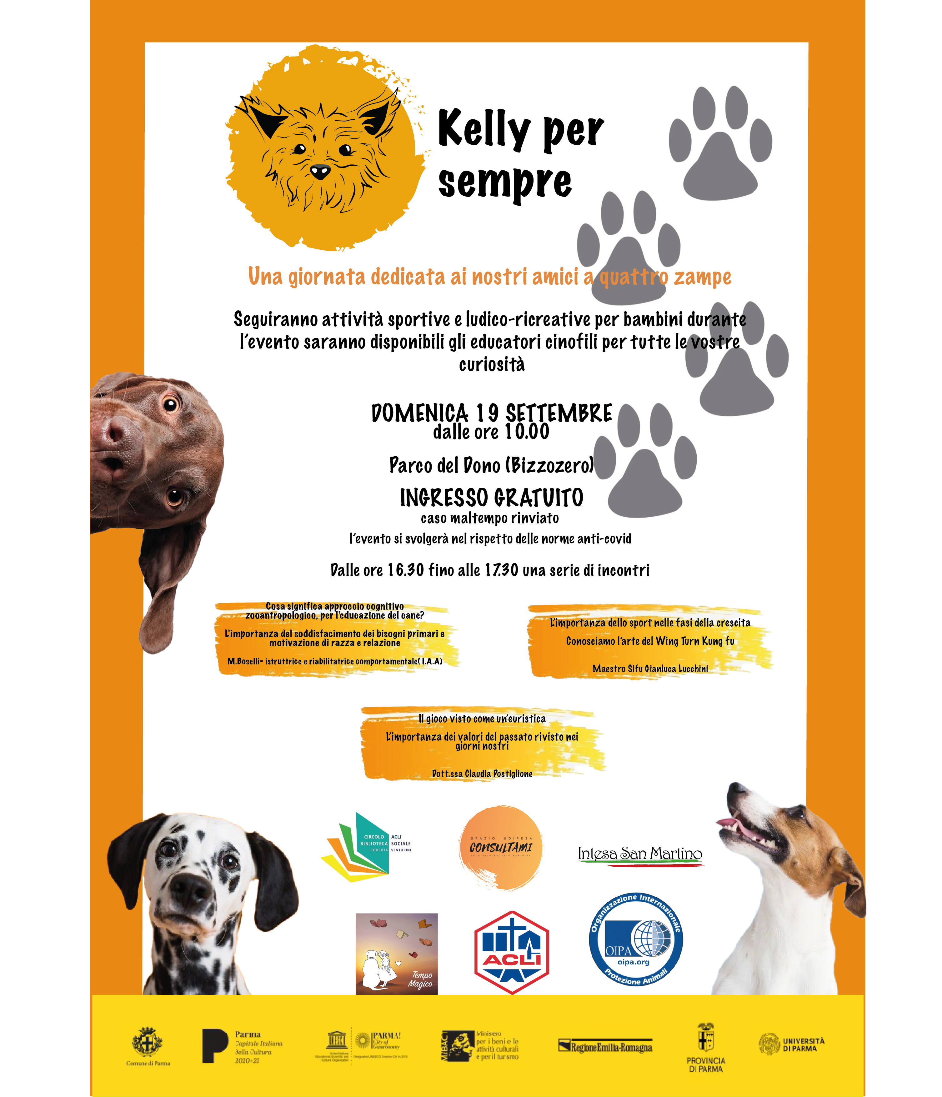 L’iniziativa “Kelly per sempre”è promossa da Intesa San Martino APS con il supporto del Circolo Acli Biblioteca Sociale Roberta Venturini, di OIPA – Parma e Tempo Magico ASD, tutti presenti con propri stand e tante attività gratuite per famiglie e i cittadini presenti e patrocinata dall’Assessorato alla Partecipazione del Comune di Parma attraverso il bando “Volontariamente”.