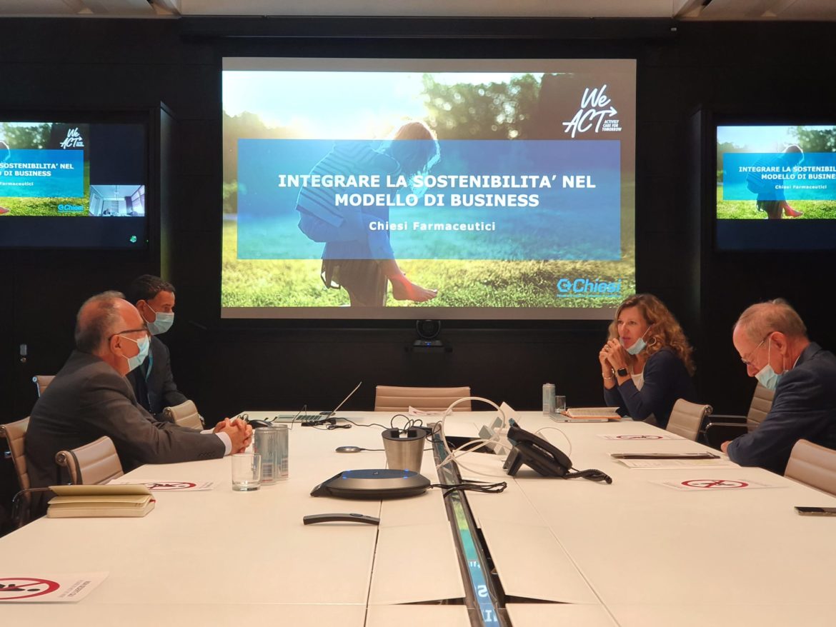 Tra i temi trattati dal Sottosegretario con i vertici di Chiesi, al centro il percorso intrapreso dall’Azienda in termini di sostenibilità e valore condiviso, anche in qualità di più grande gruppo farmaceutico internazionale ad essere certificato B Corp, ricordando l’impegno di Chiesi a raggiungere la neutralità carbonica, ovvero l’impatto zero sull’ambiente, entro il 2035.