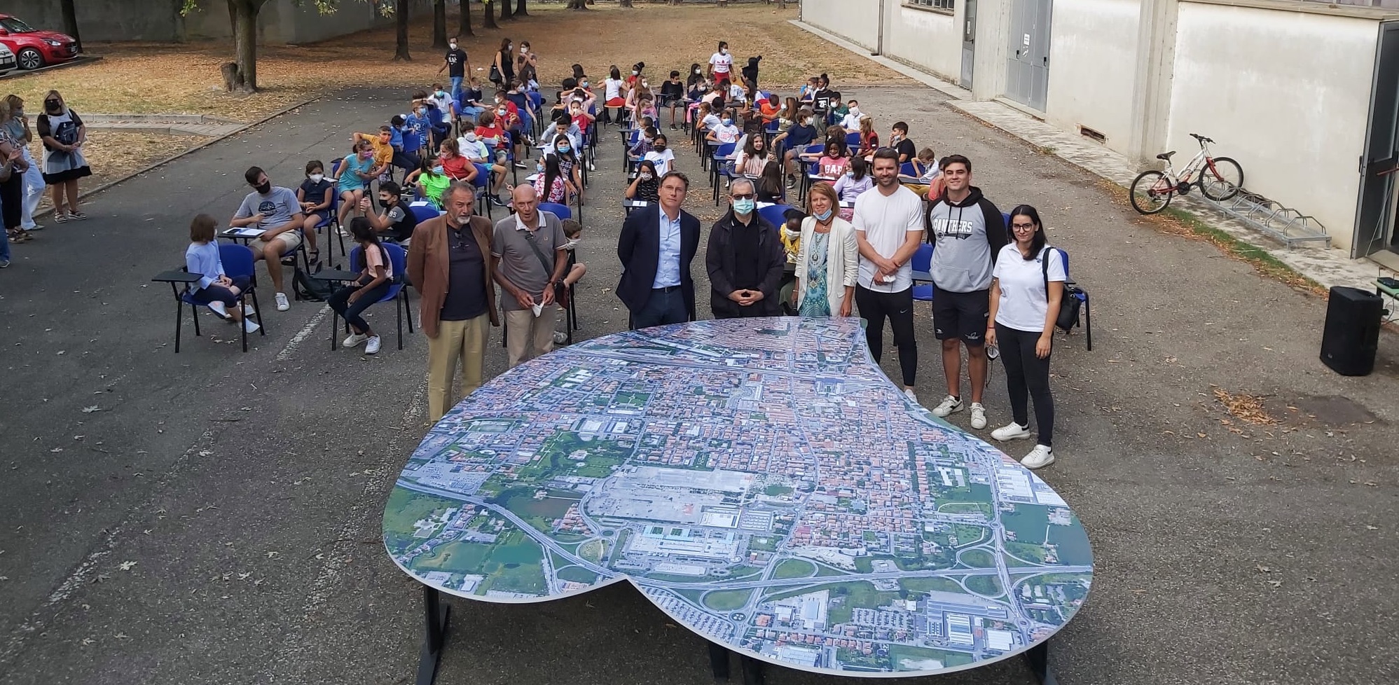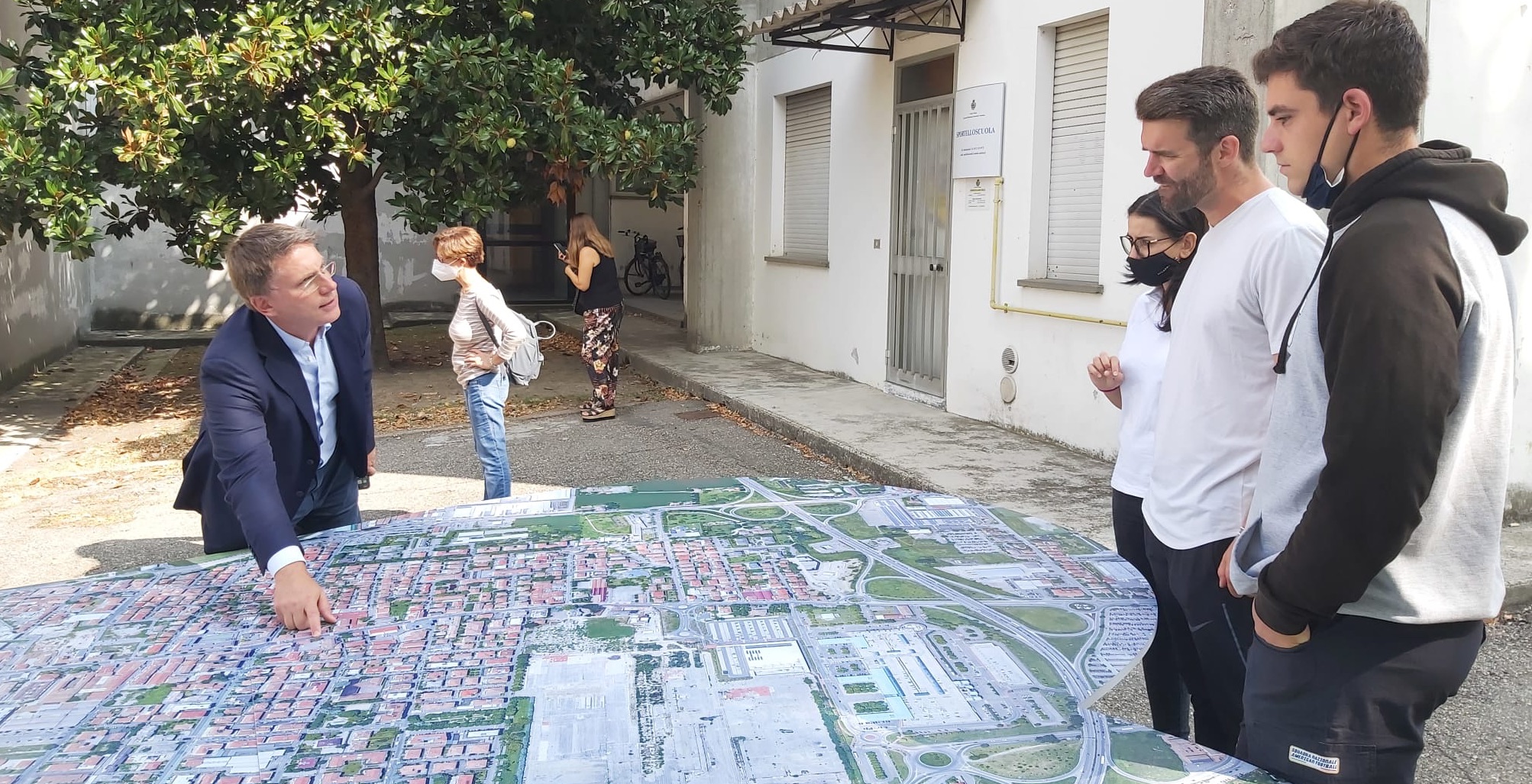 “San Leonardo cuore della città”. Con queste parole l’Università di Parma, nella persona del Professore della Facoltà di Architettura Dario Costi, ha donato all’Istituto Comprensivo Micheli una grande base con la foto aero-zenitale del quartiere. Essa sarà la base per l’allestimento di una mostra che vedrà coinvolti i tanti soggetti che hanno partecipato al processo di progettazione urbana strategica iniziato alcuni anni fa e sospeso nel 2020 per il Covid.