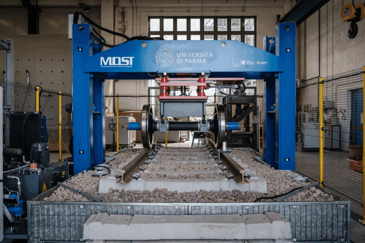 Il prototipo sperimentale è stato realizzato nell’ambito delle attività di progetto PNRR del Centro Nazionale Mobilità Sostenibile (MOST) dell’Università di Parma. È stato interamente concepito e realizzato dai ricercatori, dalle ricercatrici e dal personale del Dipartimento di Ingegneria e Architettura impegnati nello Spoke 4 di MOST (dedicato al Trasporto Ferroviario) e rappresenta un allestimento assolutamente unico nel suo genere, capace di riprodurre in ambiente di laboratorio carichi dinamici e rilevare sollecitazioni di assi ferroviari su armamento, massicciata e sub-ballast reali.