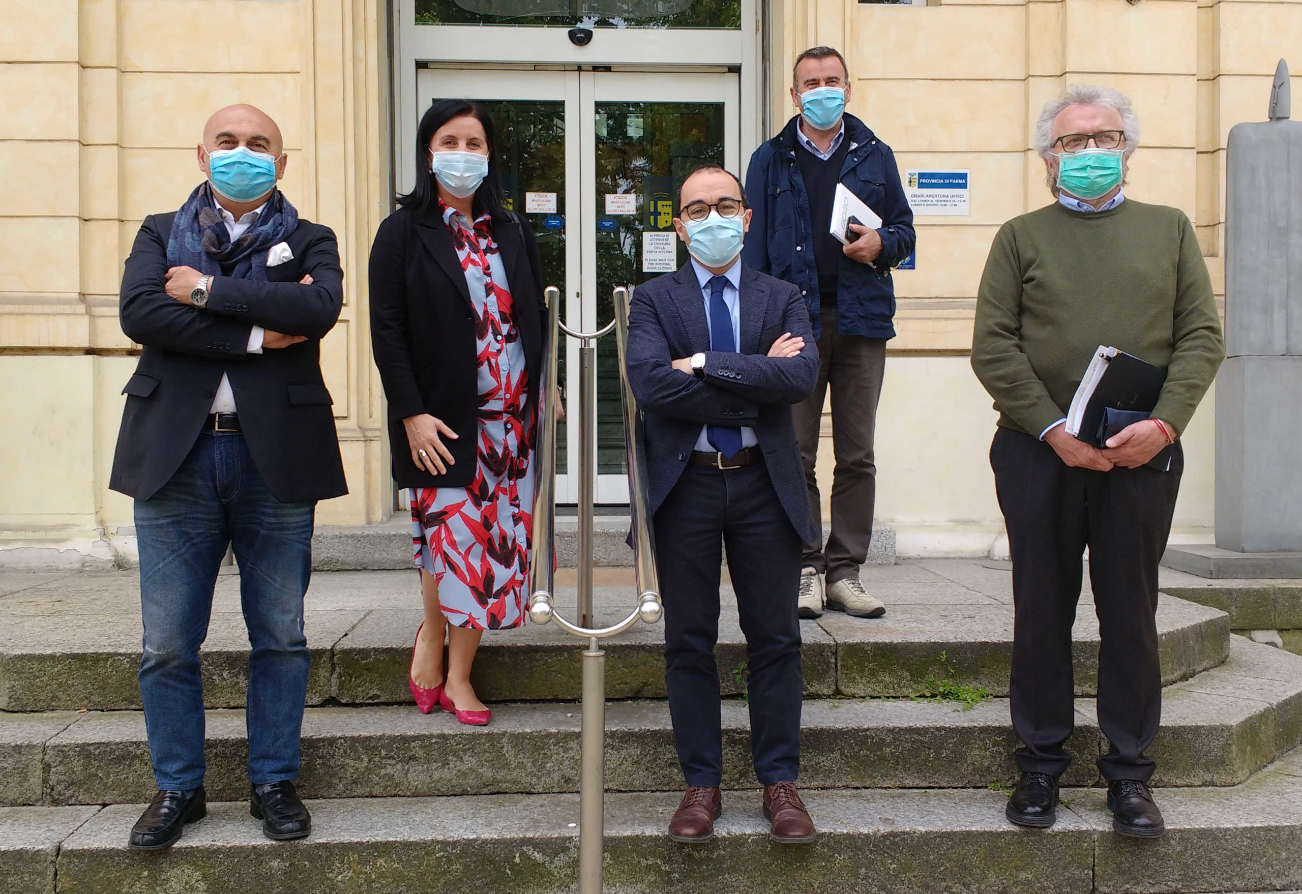 A riceverla il Presidente della Provincia Diego Rossi, insieme ai Delegati alla Viabilità Bertocchi, alla Montagna Delsante e alla Pianificazione Cantoni, e ai Dirigenti Monteverdi e Ruffini.