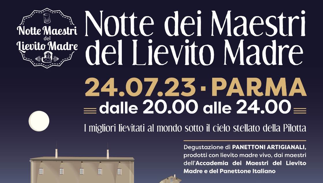Basta un solo ingrediente, il lievito madre fresco, per illuminare il centro storico di Parma: torna lunedì 24 luglio, La Notte dei Maestri del lievito madre, una serata all’insegna dell’artigianalità organizzata dall’Accademia dei Maestri del Lievito Madre e del Panettone Italiano con il patrocinio del Comune di Parma e Parma Food Valley, sotto il cielo stellato della Pilotta.