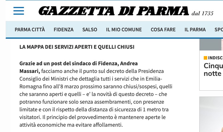 Sono altissimi i numeri che sta facendo la pagina Facebook del sindaco di Fidenza, Andrea Massari: da circa un mese si è assestato tra le 70.000-90.000 interazioni (like + commenti + condivisioni + altro) alla settimana grazie ai suoi continui aggiornamenti sul Coronavirus, raggiungendo in sette giorni 160.000 persone diverse e crescendo del 7-10% nel numero dei “mi piace”.
