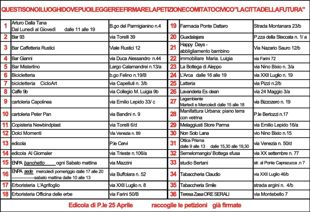 Il Comitato Cittadella futura informa che la Petizione rivolta al sindaco Pizzarotti per “sospendere qualunque intervento nell’ambito del Progetto di Restyling della Cittadella, in attesa dell’aggiornamento del Masterplan al 2020, della sua pubblicazione online sul sito del Comune di Parma, con le modifiche annunciate ad oggi solo verbalmente” è anche online al link: http://chng.it/BFwNvhBTCn
