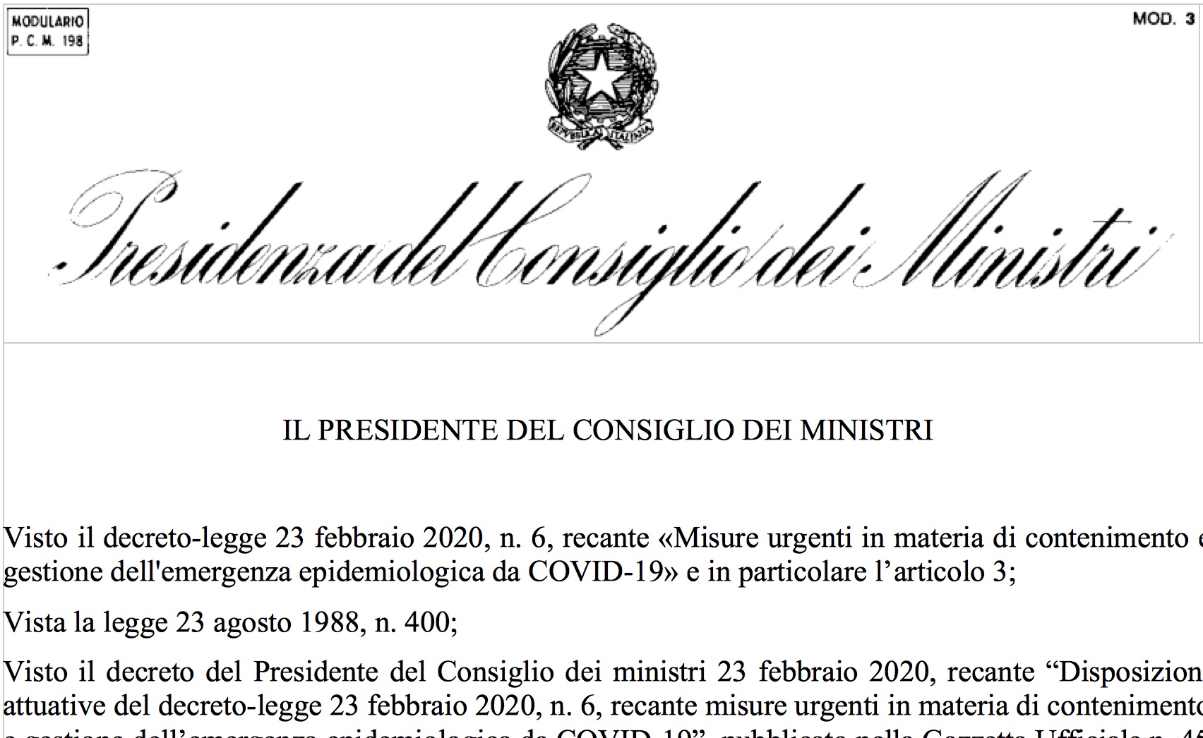 La bozza del Decreto del Presidente del Consiglio dei Ministri sul tavolo del Premier Conte sarà firmato (o variato) domani e viene già considerato come il provvedimento più duro della storia del paese.