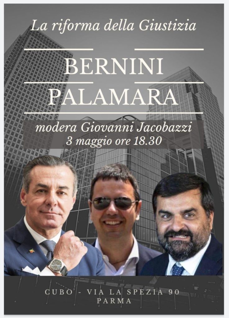 Si confronteranno Giovanni Paolo Bernini, esponente politico parmigiano di Forza Italia e autore del libro “Storie di ordinaria ingiustizia”, e l’ex PM Luca Palamara.