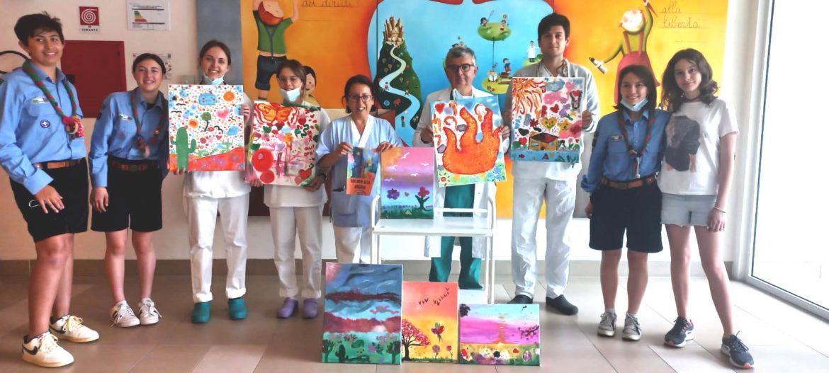 La squadriglia Antilopi ha fatto “un’impresa di squadriglia” e ha realizzato delle tele con i bambini e i ragazzi della Parrocchia di Santa Maria del Rosario di via Isola, dove hanno la sede, e hanno donato il risultato della loro iniziativa alla Pediatria d’urgenza dell’Ospedale dei bambini “Pietro Barilla”.