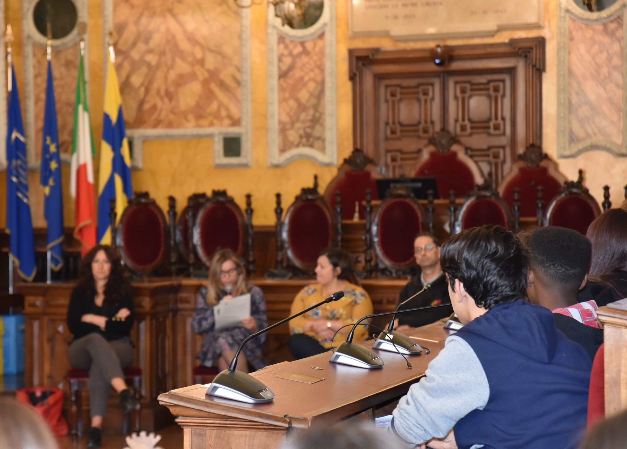 Margherita Asta che ha perso la madre e i fratelli nella strage di Pizzolungo ha incontrato le terze classi della Newton nella sala del Consiglio Comunale.