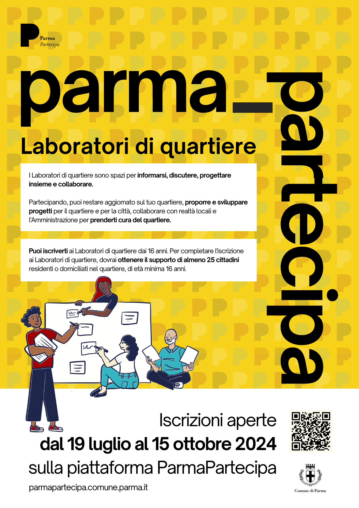 Si aprono oggi le iscrizioni ai Laboratori di Quartiere, i nuovi istituti del Comune di Parma dedicati alla partecipazione di tutte le cittadine e i cittadini.