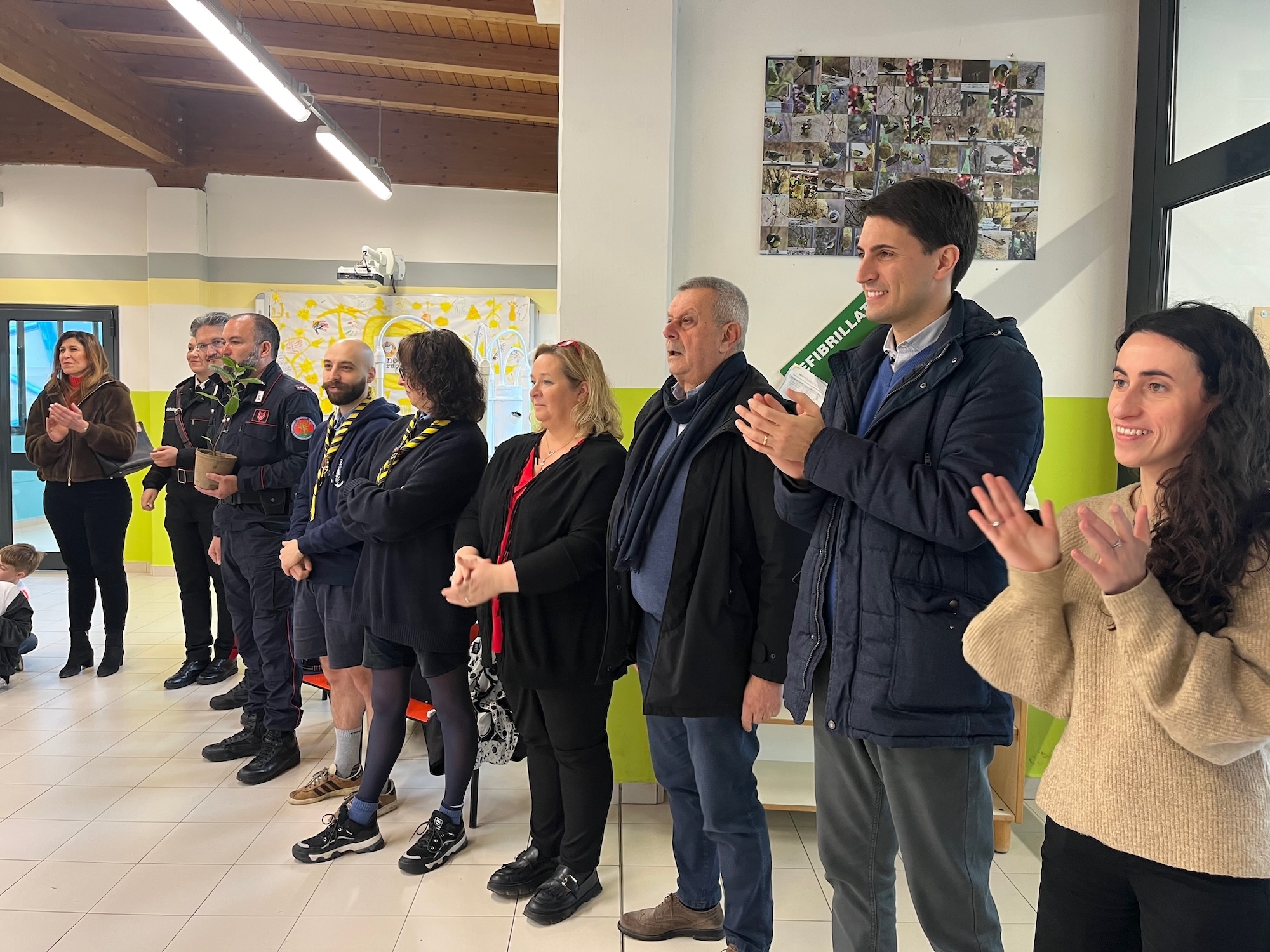 Alla consegna della talea erano presenti anche il vicesindaco Francesca Tonelli e gli assessori Laura Scalvenzi e Giuseppe Meraviglia, oltre alla dirigente scolastica Marianna Rusciano e al Maresciallo dei Carabinieri Lia Russo.