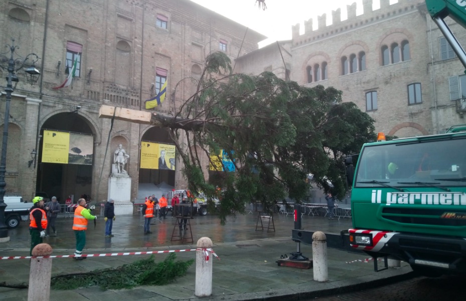 E’ arrivato portando un soffio di “marino” l’albero che accompagnerà dalla Piazza le festività natalizie di Parma.