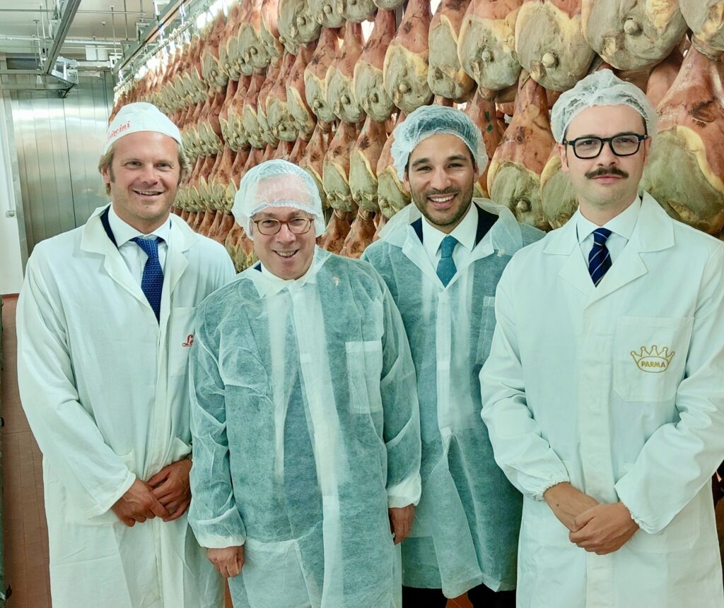 Nella visita è stato accompagnato da Matteo Cavalli, responsabile relazioni esterne del Consorzio del Prosciutto di Parma, e da Vittorio Leoncini, responsabile export dell’azienda.