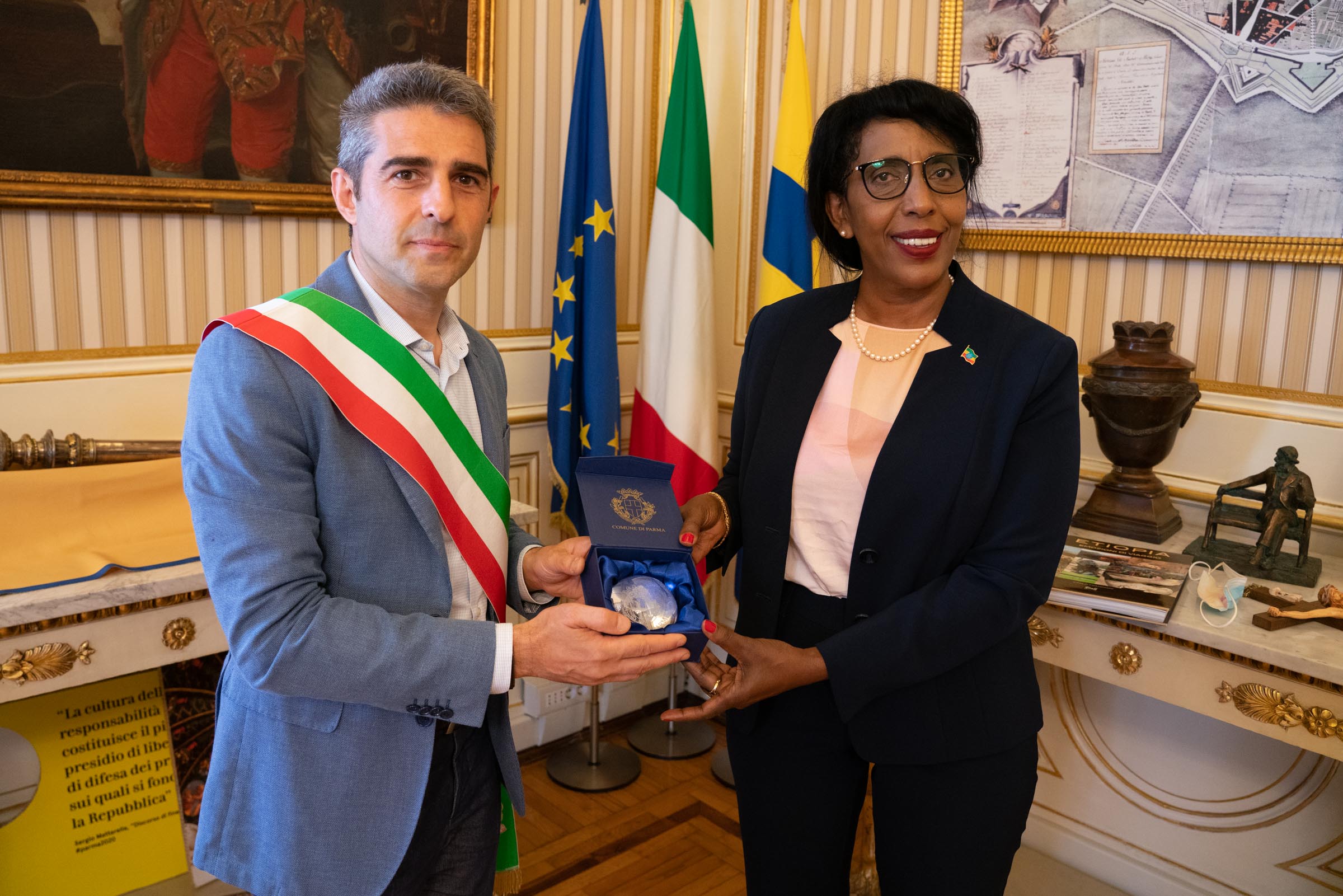 Demitu Hambisa Bonsa, da poco nominata Ambasciatrice d’Etiopia in Italia, ha fatto tappa, questa mattina, in municipio. E’ stata accolta dal Sindaco, Federico Pizzarotti, e dall’Assessora alla Cooperazione Internazionale, Nicoletta Paci. Si è trattato di un colloquio franco e costruttivo in cui sono state gettate le basi per future e proficue collaborazioni. L’occasione è stata utile, da parte dell’Ambasciatrice, per incontrare anche i rappresentanti della Comunità Etiope a Parma e quelli dell’Associazione “Parma per gli altri”, e per prendere atto dei progetti di cooperazione internazionale in corso tra Parma ed il Paese africano.