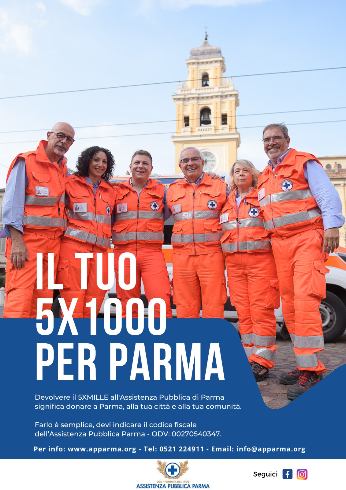 Devolvere il 5×1000 all’Assistenza Pubblica di Parma significa donare a Parma, alla propria città e comunità. Grazie a questo prezioso gesto l’associazione potrà continuare a migliorare e potenziare i servizi, assicurando ogni giorno assistenza e supporto a tutti coloro che ne necessitano.
