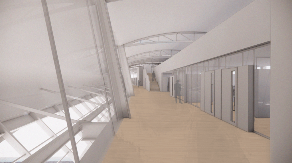 In sinergia con i migliori istituti universitari del nord Italia e con gli enti di tutela di competenza, all’interno della struttura potranno svolgersi master e corsi di alta formazione legati ai temi del paesaggio, della mitigazione dei cambiamenti climatici, della crisi delle acque, avviando osservatori e laboratori attivi sul territorio e posti in rete con le realtà diffuse del paesaggio padano intercettato dal Grande Fiume. La definizione di un cluster funzionale tematico configurerebbe il Ponte come un nuovo presidio urbano in grado di avviare un processo di implementazione delle dotazioni della città, grazie in particolare alla possibilità di insediare nell’edificio il polo direzionale dell’Autorità di Bacino Distrettuale del fiume Po.