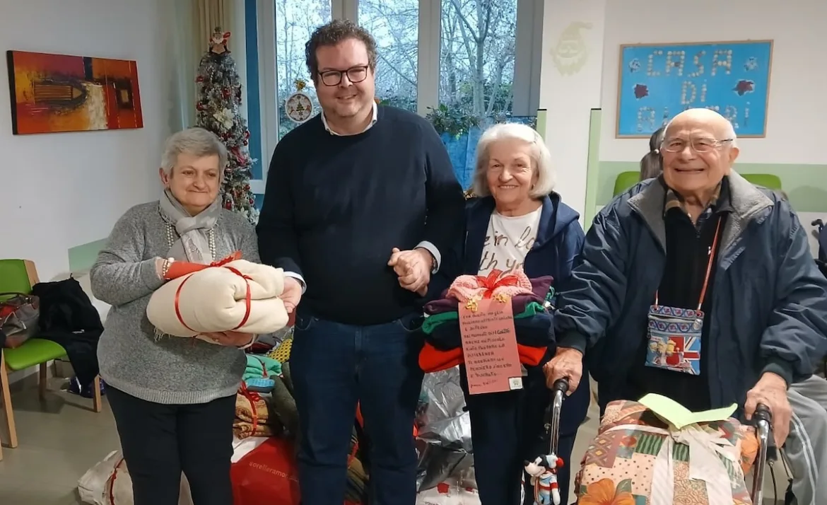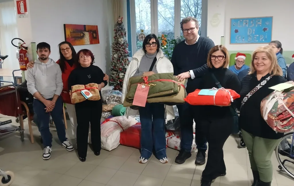 “Le nostre strutture sono parte viva delle comunità nelle quali sono inserite. Tra il dentro e il fuori c’è un dialogo costante, fatto anche di solidarietà. È questo il senso della nostra donazione: far sentire vicini coloro che spesso sono dimenticati” racconta Giuseppe Gaiani, responsabile delle attività di animazione della cooperativa Proges, mentre introduce la consegna delle coperte realizzate dagli anziani e dai loro familiari presso la CRA di Alberi.
