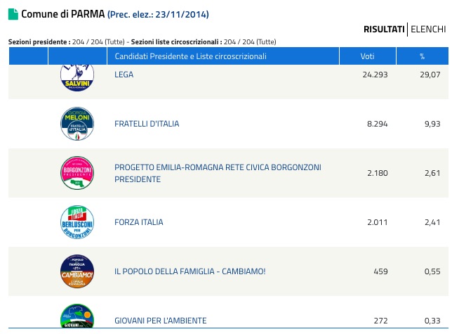 In PROVINCIA DI PARMA vince Lucia Borgonzoni ( sezioni: 430 / 468 )