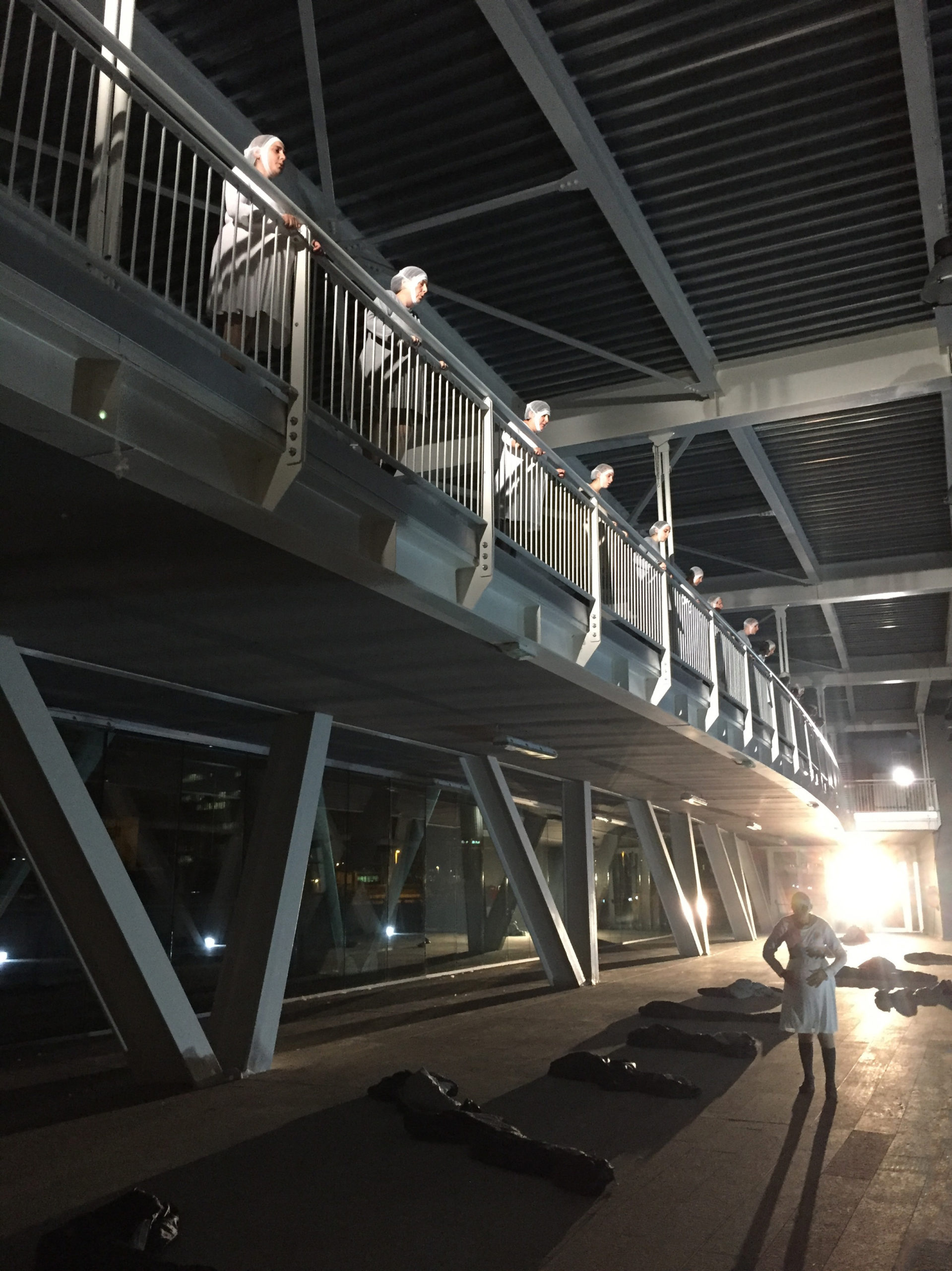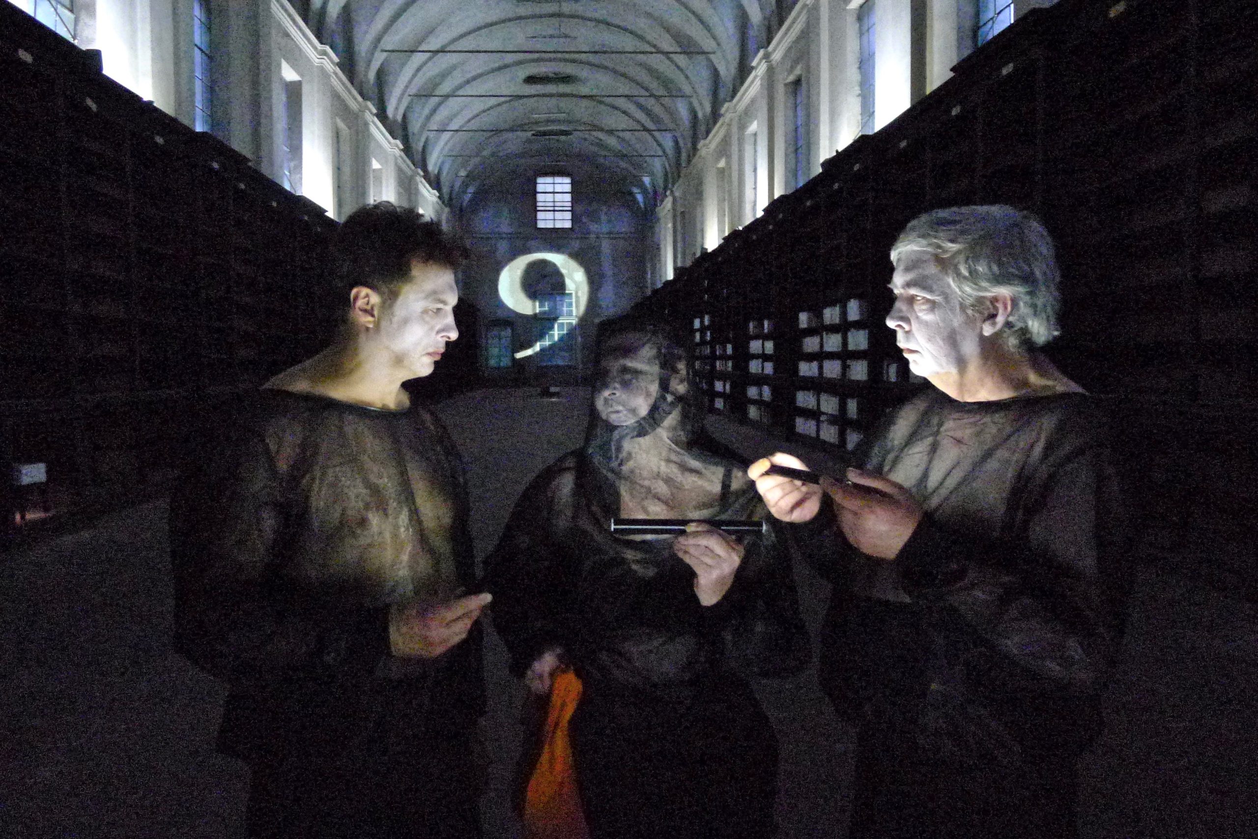 «Ricercare l’origine e specchiarla nel contemporaneo è sempre un forte stimolo per sentirsi parte di una grande tradizione e di un presente che possa esserne all’altezza» riflette Maria Federica Maestri, regista e creatrice di installazione e costumi «Edifici monumentali attraversati da monumentali opere letterarie, teatrali, musicali nelle forme artistiche più avanzate. Il grande monumento poetico di Dante rifrange la nostra condizione umana e artistica nei luoghi della costrizione dolorosa, del teatro sospeso, dell’illusione».