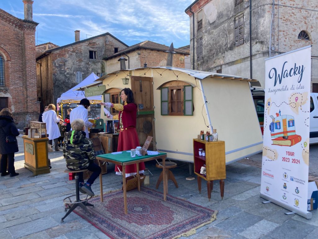 Una vera e propria bottega speciale, che mescola scaffali di libri, estratti di parole in disuso, pillole di verbi ad elisir poetici e affettatrici, tostapane, bilance, utensili utili a predire il futuro e azzeccare il rimedio giusto per ogni malanno! Wacky sarà protagonista anche della performance “Voci in cammino”, un percorso a piedi lungo le vie di Busseto, caratterizzato da quattro suggestive tappe in cui il pubblico ascolterà poesie, lettere, brani da romanzi e racconti narrati e letti ad alta voce. La terza tappa del percorso si terrà alle 12 sotto i portici della Biblioteca di Busseto e alle 15.30 negli spazi interni.