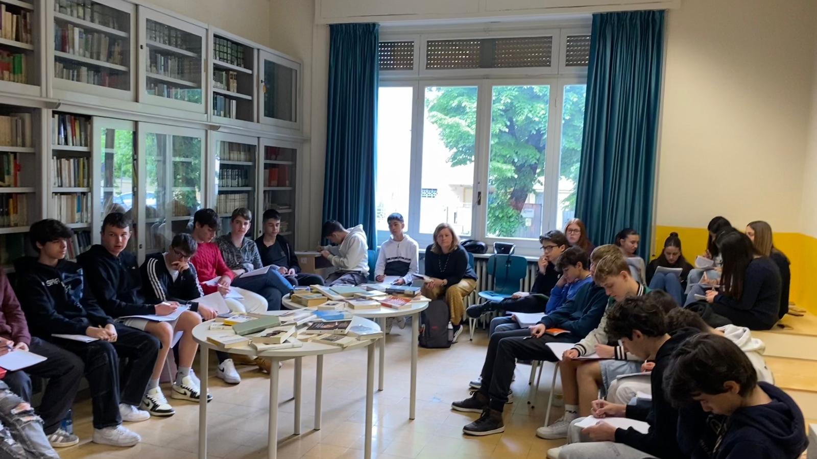 A guidare l’attività sono stati venti studenti delle classi terze, chiamati a presentare in modalità peer to peer agli alunni di quattordici classi del biennio, una speciale selezione di libri, preparata con l’aiuto delle bibliotecarie Emanuela Zambrelli e Chiara Arneodo. All’interno delle aule e negli ambienti rinnovati della Biblioteca Truffelli, lo spazio scolastico deputato alla lettura e allo scambio di libri, sono stati così vissuti alcuni fondamentali momenti di condivisione in cui si è compreso insieme il senso del progetto e sono state messe in atto le strategie più efficaci per far conoscere i testi prescelti ai compagni più giovani; romanzi, saggi, ma anche fumetti pensati appositamente per gli adolescenti, per aiutarli nella loro formazione, nello sviluppo del senso critico, nella conoscenza di sé e del proprio posto nel mondo, hanno così potuto riflettersi nel presente, facendo risuonare stili, linguaggi e tematiche con tutta la loro forza.