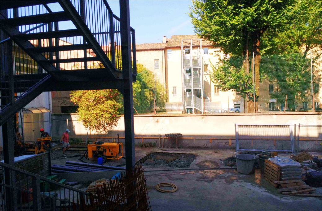 Sono già stati conclusi nei mesi scorsi, a scuola chiusa, tutti i lavori preparatori necessari a liberare l’area di cantiere, dalla realizzazione di una seconda scala antincendio alla costruzione della nuova rampa per disabili verso Piazzale San Sepolcro; conclusi anche i lavori di adeguamento dei servizi igienici e della centrale termica, tinteggi e serramenti.