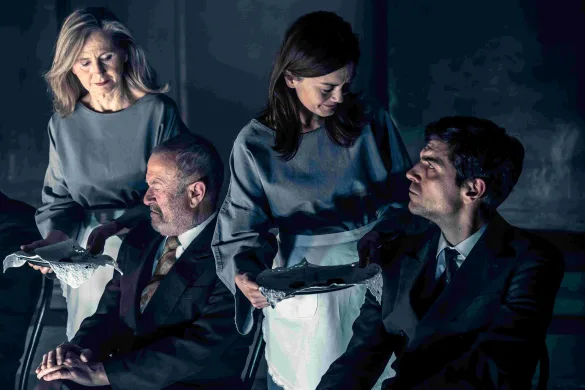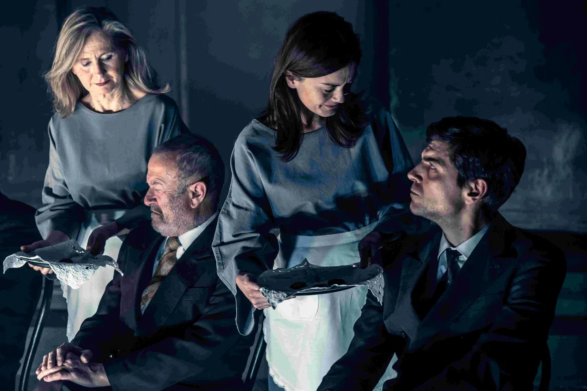 Sul palco: Roberto Abbati, Paolo Bocelli, Cristina Cattellani, Laura Cleri, Ilaria Falini, Davide Gagliardini, Pino L’Abbadessa, Milena Metitieri, Massimiliano Sbarsi, con le musiche originali di Alessandro Nidi eseguite dal vivo da Davide Carmarino. Produzione della Fondazione Teatro Due, con costumi di Nica Magnani e luci di Claudio Coloretti.