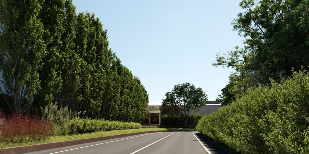 Al centro dell’intervento c’è il dialogo tra prodotto industriale, natura e arte: il limite ovest della sede industriale di Marazzi verrà infatti rinnovato e prenderà forma grazie a grandi lastre sospese sul parco lineare, integrate in un sistema ambientale dinamico. Un paesaggio in continua evoluzione, capace di trasformarsi con il passare delle stagioni e di interagire con le installazioni in un rapporto di perfetta simbiosi. Il muro esistente ed il bordo asfaltato diventeranno un parco lineare che accompagnerà la strada, realizzando un sistema verde di dissolvenze capace di attivare un nuovo rapporto di relazione con l’esterno: diversi livelli di vegetazione creeranno una progressione capace di trasformare quello che era il confine di uno stabilimento industriale in un paesaggio naturale e urbano al tempo stesso.