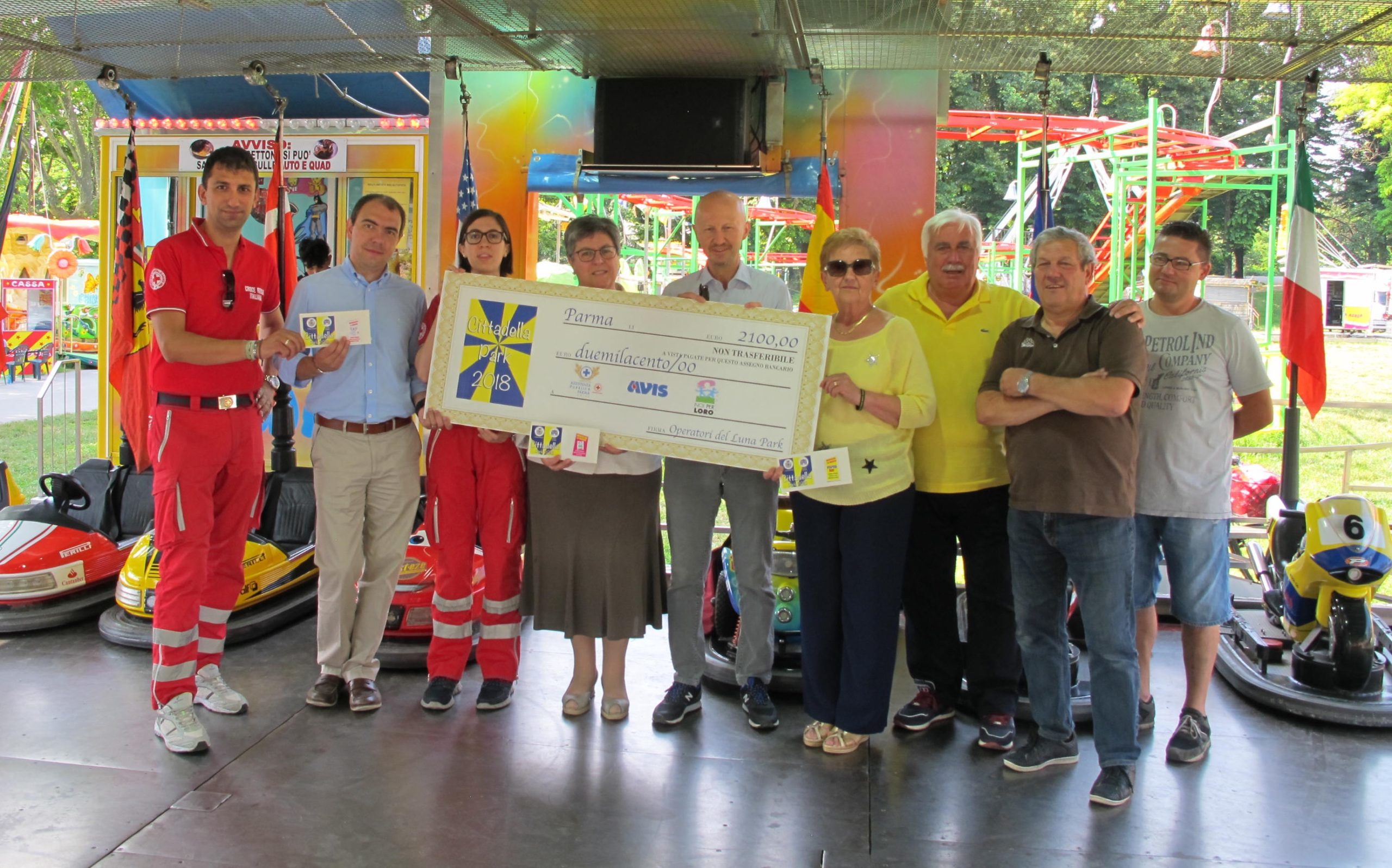 Presenti alla consegna Nella Capretti Presidente di Noi Per Loro, Anna Dalco’ Presidente di Avis Montebello e Luca Bellingeri Presidente dell’Assistenza Pubblica. “Dal suo primo anno il Luna Park ha voluto esprimere la sua vicinanza alle associazioni che a Parma sono vicine ai bambini. Siamo associazioni complementari che sono vicine a bambini e famiglie che vivono un momento di difficoltà e hanno bisogno di non sentirsi sole. Siamo grati ai gestori del Luna Park, per il loro gesto che si ripete nel tempo e che è un segno tangibile della partecipazione alla vita sociale della nostra città.”
