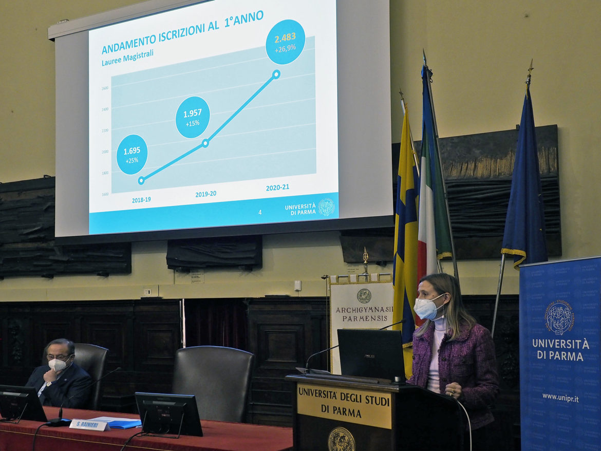 «I dati delle iscrizioni che presentiamo oggi sono davvero confortanti – commenta il Rettore Paolo Andrei – considerate le difficili condizioni in cui tutto il sistema universitario si è venuto a trovare a causa dell’emergenza sanitaria e tenuto conto degli sforzi che tutti noi abbiamo compiuto per garantire continuità didattica e diritto allo studio. L’impegno profuso dalla nostra Università, così come dall’intero sistema universitario, ha consentito di affrontare le difficoltà causate dalla pandemia sviluppando ancora una volta, con tutte le energie possibili, una strategia di investimento sui giovani e sulle loro straordinarie qualità. E i giovani hanno risposto molto bene, dimostrando la loro voglia di apprendere, di confrontarsi e di impegnarsi in un percorso che all’Università di Parma vuole essere di crescita umana e culturale. Proprio su questo desidero soffermarmi in modo particolare: sul senso di responsabilità e sull’impegno dimostrato dall’intera comunità universitaria di Parma, in tutte le sue componenti. E ai nuovi studenti che da poche settimane sono entrati a farne parte desidero porgere un affettuoso benvenuto, nella certezza che sapranno incarnare questi valori con ulteriore slancio e vivacità».